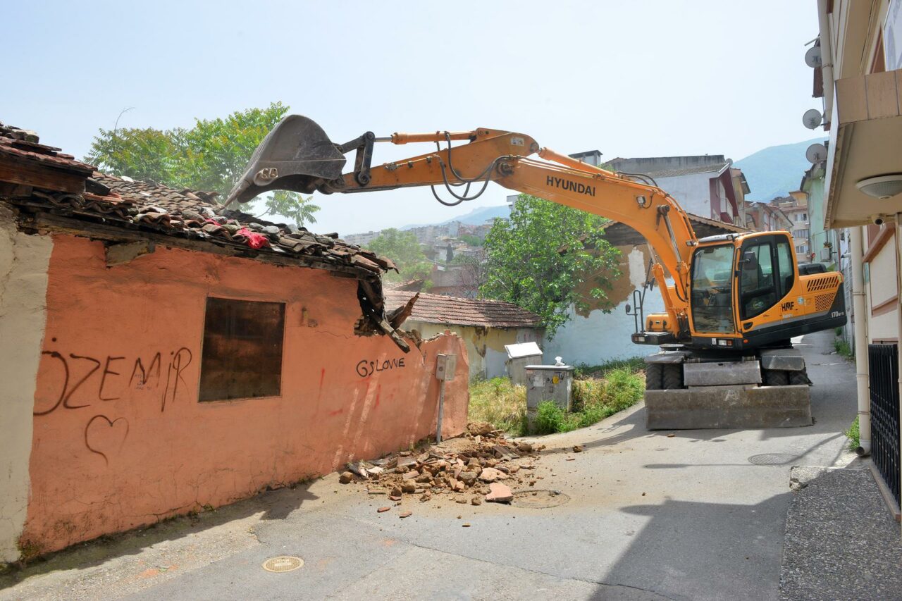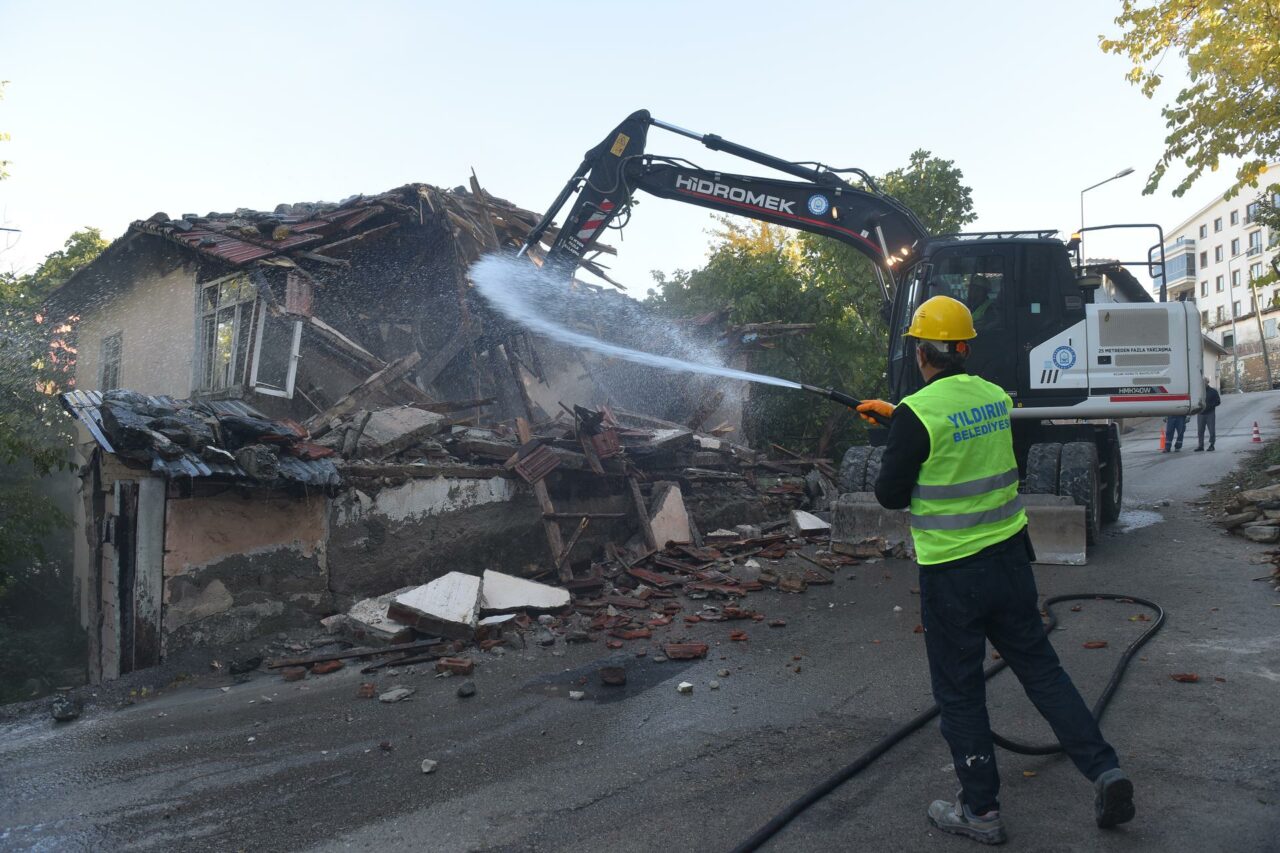 Yıldırım Belediyesi kullanım ömrünü tamamlayan, kent estetiği bakımından olumsuz görüntü oluşturup, çevre ve insan güvenliği açısından tehlike barındıran ve kötü amaçlarla kullanıldığı tespit edilen metruk binaları yıkıyor.