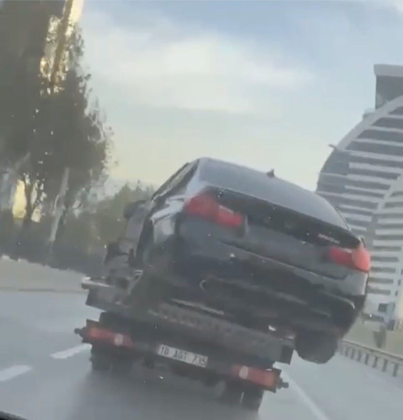 Edinilen bilgiye göre, kaza yapan otomobil çekiciye sığmayınca bir kısmı dışarıda kaldı. Buna aldırmayan çekici sürücüsü gideceği yere kadar otomobili böyle götürürken, o anlar trafikteki başka bir sürücünün cep telefonu kamerasına yansıdı.