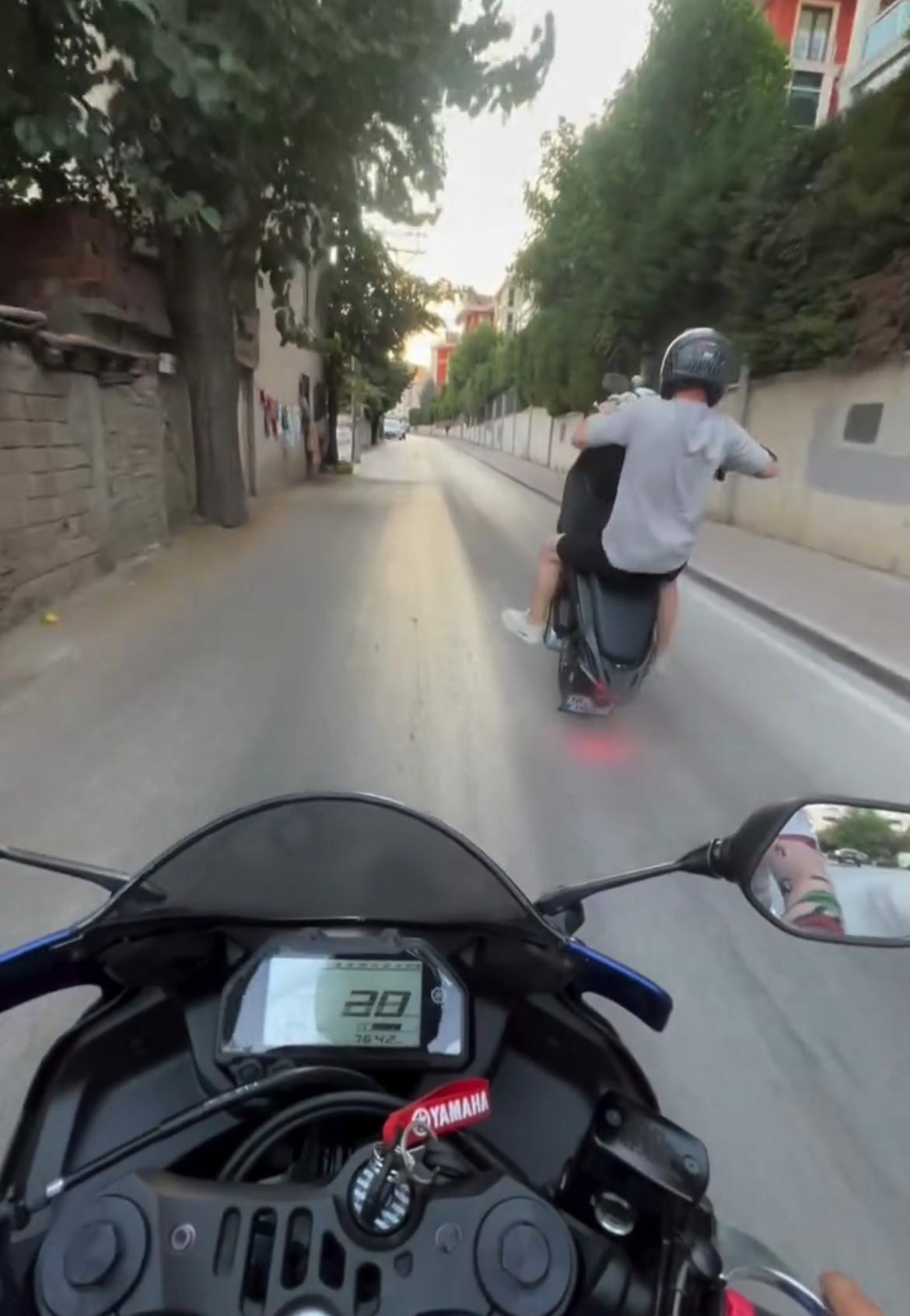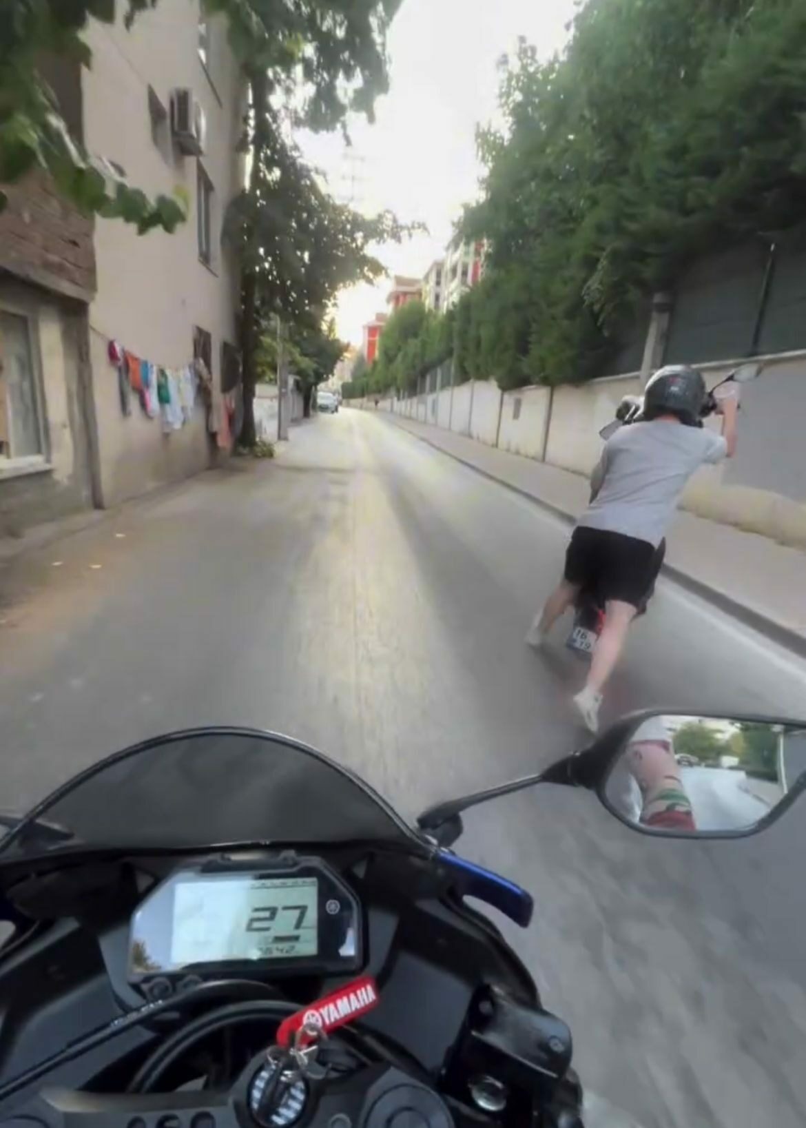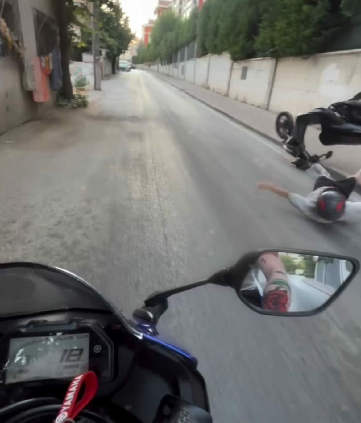 Nilüfer ilçesinde seyir halinde olan bir sürücü, motosikletinin ön tekerini kaldırıp, tek teker üzerinde ilerlemeye çalıştığı sırada, dengesini kaybedip düştü.