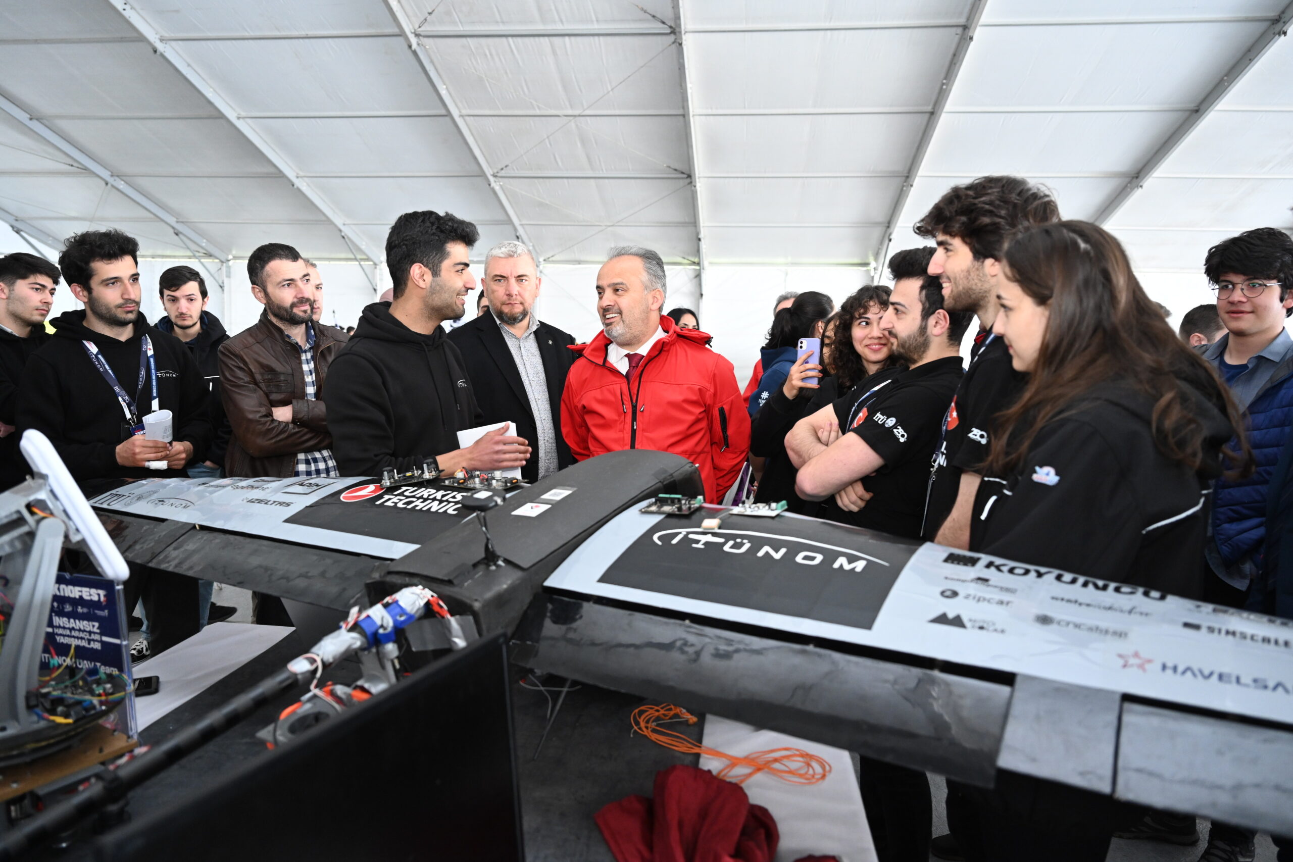 Bursa Büyükşehir Belediye Başkanı Alinur Aktaş, Yunuseli Havaalanında teknolojide yarışan gençleri atölyelerinde ziyaret etti. Çalışmaları hakkında gençlerden bilgi alan ve onlara çeşitli hediyeler veren Başkan Aktaş, “Milli teknoloji hamlesi kapsamında yapılan çalışmalar ile ülkemizde her alanda yerli ve milli üretim artıyor. İHA teknolojisinde ise ülkemiz, dünyadaki en başarılı birkaç ülkeden biri hâline geldi. Bu başarı, ülkemizin gururu olduğu kadar aynı zamanda bizlerin sorumluluğunu da arttırıyor. Bu yıl yarışmaya geçen yıla oranla yüzde 86 artışla 1228 takımın başvurması gençlerimizin de teknolojiye olan ilgisini gösteriyor. Tüm yarışmacılarımızı yürekten kutluyorum. Bursa Büyükşehir Belediyesi olarak bu tür etkinlikleri hep destekledik, desteklemeye de devam edeceğiz. Zira yaşadığımız çağı yakalamak için bilim temelli bir bakış açısı geliştirmemiz gerektiğini düşünüyorum. Geçmişimizden güç alıp geleceğimizi, çağın gereklerine göre şekillendirmeliyiz” diye konuştu.