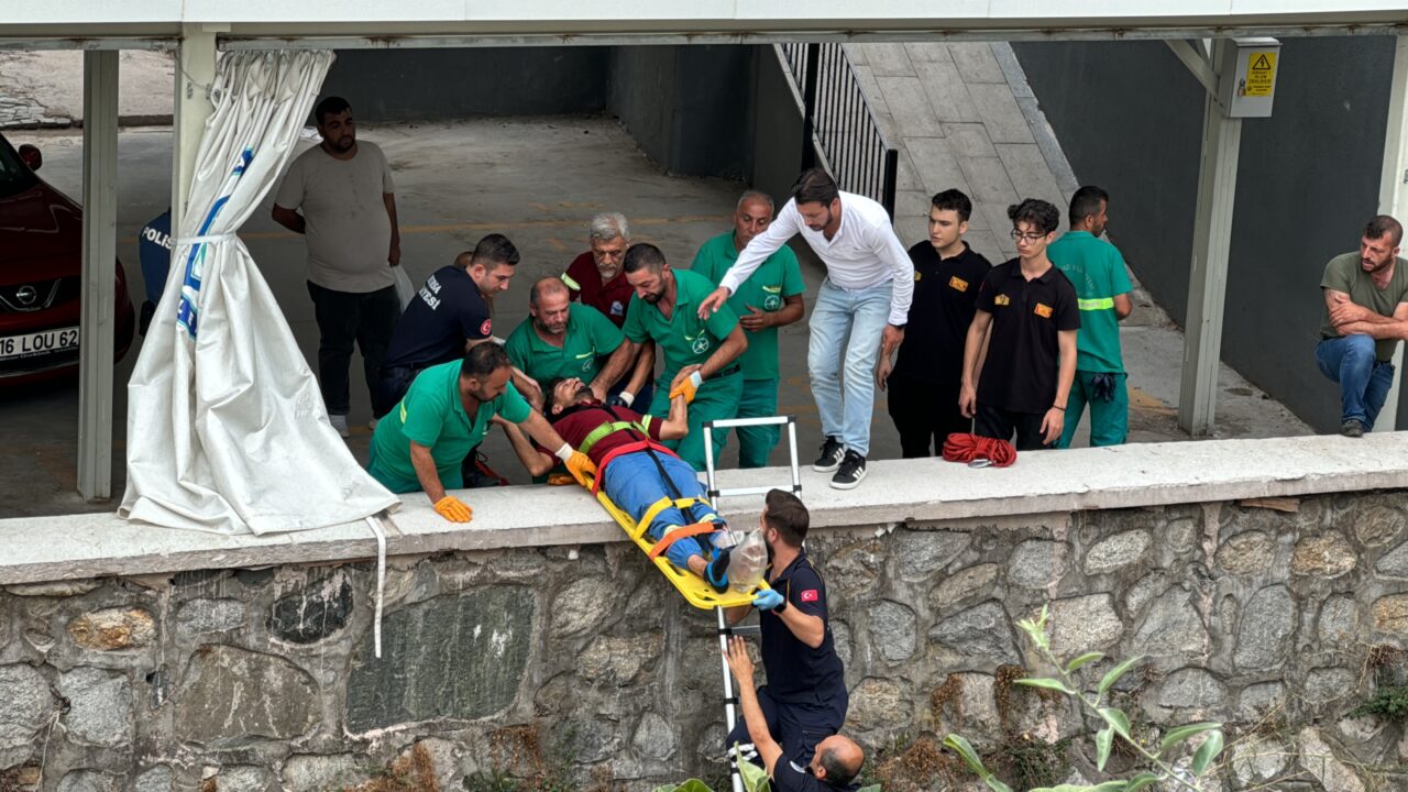 Yaklaşık 5 metreden beton zemine düşen Tarık A. yaralandı.
