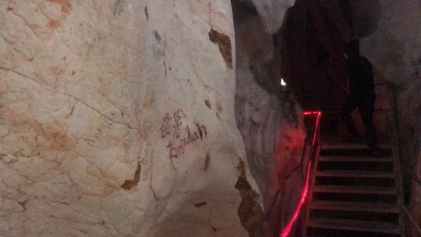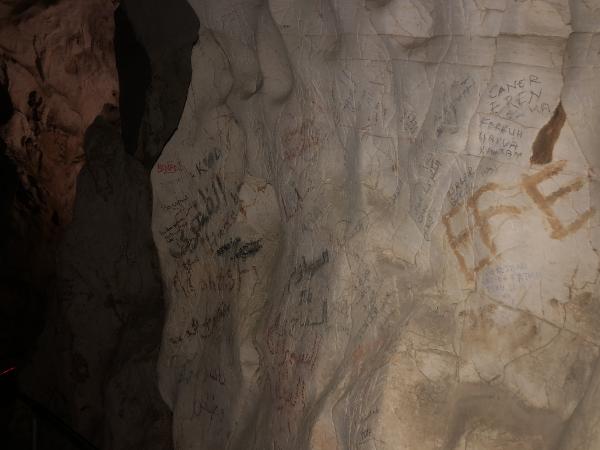 Özellik yabancı turistlerin ziyaret ettiği 700 metre uzunluğu, 93 metre yüksekliğe sahip olan mağaranın duvarlarının yazı tahtasına çevrilmesi, tepki çekti. Bölge sakinleri ve ziyaretçiler, yazı yazan kişilerin bulunup, cezalandırılmasını istedi.