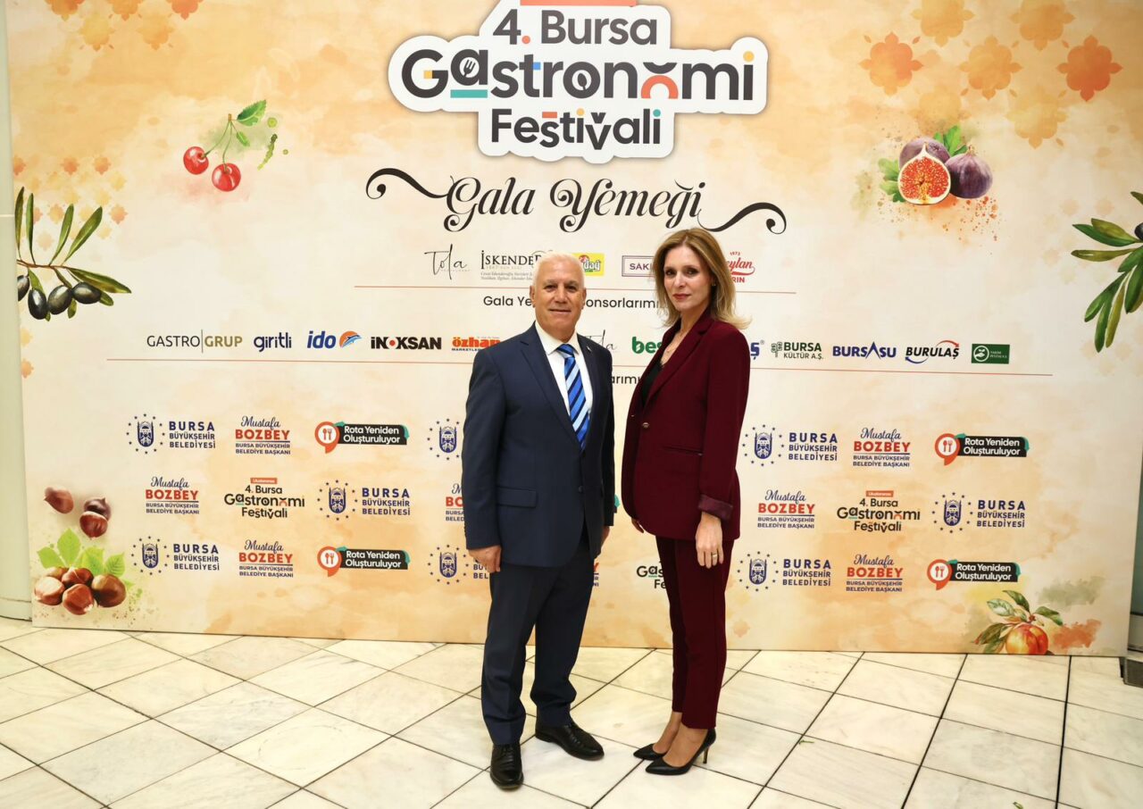 Bursa’nın zengin ve köklü mutfak kültürünü dünyaya duyurmak ve gastronomi turizminden hak ettiği payı alabilmesini sağlamak amacıyla Büyükşehir Belediyesi tarafından hazırlanan 4. Bursa Uluslararası Gastronomi Festivali, şehir içinden ve şehir dışından gelen lezzet tutkunlarının yoğun ilgisiyle sürüyor. Bursa Büyükşehir Belediye Başkanı Mustafa Bozbey de eşi Seden Bozbey ile birlikte gala yemeğinde sektör paydaşlarıyla buluştu.