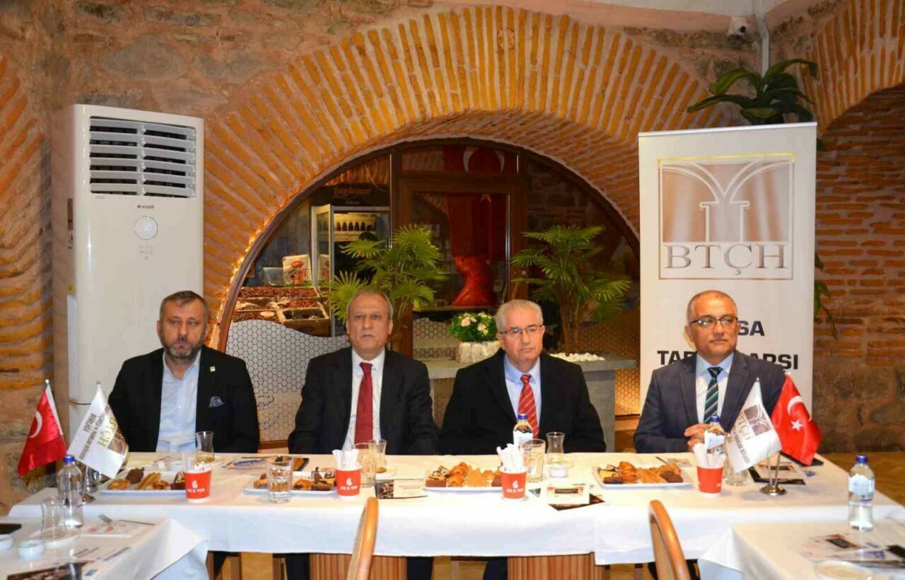 İç Koza Han’da düzenlenen toplantıya Bursa Vali Yardımcısı Hulusi Doğan, Osmangazi Kaymakamı Ali Partal, İl Sağlık Müdürlüğü Halk Sağlığı Hizmetleri Başkanı Dr. İrfan Oğuz ve Bursa Tarihi Çarşı ve Hanlar Birliği Derneği üyeleri katıldı.