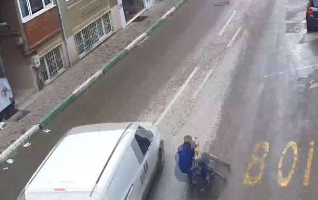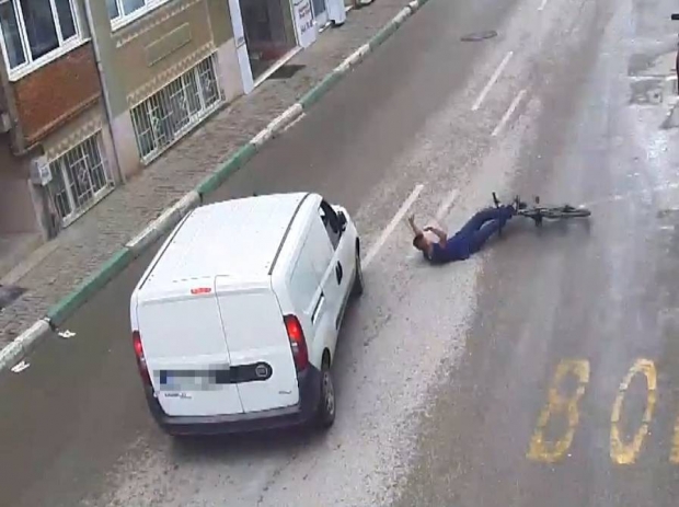 Öte yandan bisikletli genç ile ticari aracın çarpışma anı kameralara yansıdı.