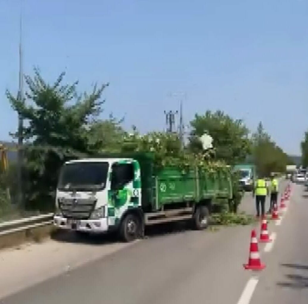 Hamza A.’nın kontrolünü yitirdiği 61 K 0369 plakalı TIR, bariyerlere çarpıp devrildi. Kazada Hamza A. yaralandı.