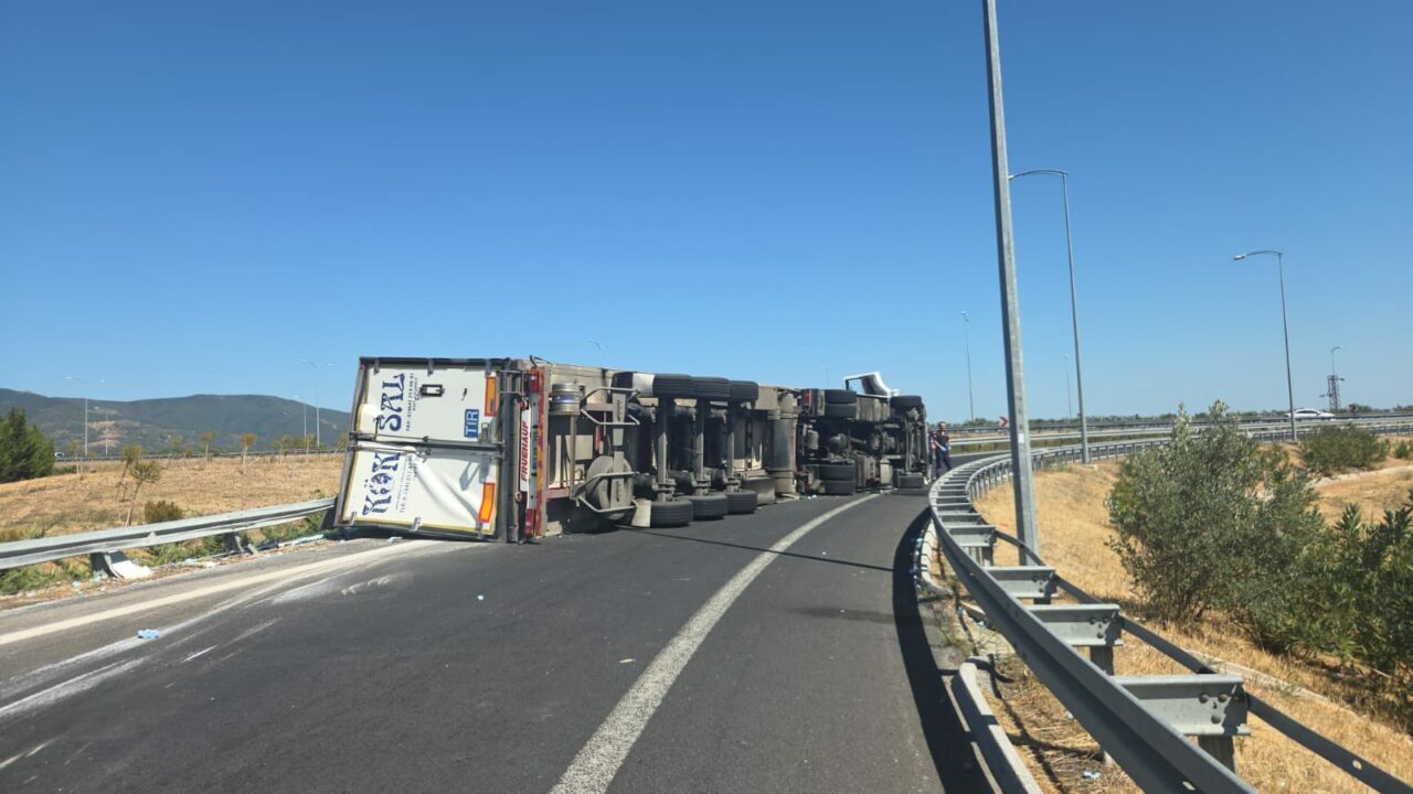 S.A. (57) idaresindeki 53 DZ 137 plakalı tır, Orhangazi Kavşağı’ndan Gebze-Orhangazi-İzmir Otoyolu’na bağlanan virajda sürücünün direksiyon hakimiyetini kaybetmesi sonucu devrildi.