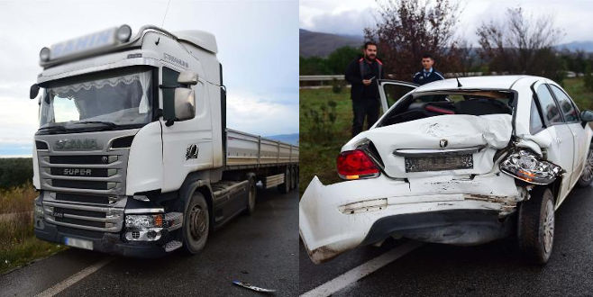 Otomobil, ana yoldan tali yola giriş yapmak istediği sırada durakladı. Bu sırada Bilal Şahin, (27) yönetimindeki 16 RAL 25 plakalı TIR, otomobile arkadan çarptı. Çarpmanın şiddetiyle savrulan otomobildeki Düzgün, Şahin, Geray ve Han yaralandı. İhbar üzerine olay yerine gelen sağlık ekiplerinin ilk müdahaleyi yaptığı yaralılar, ambulansla Orhangazi Devlet Hastanesi’ne kaldırdı.