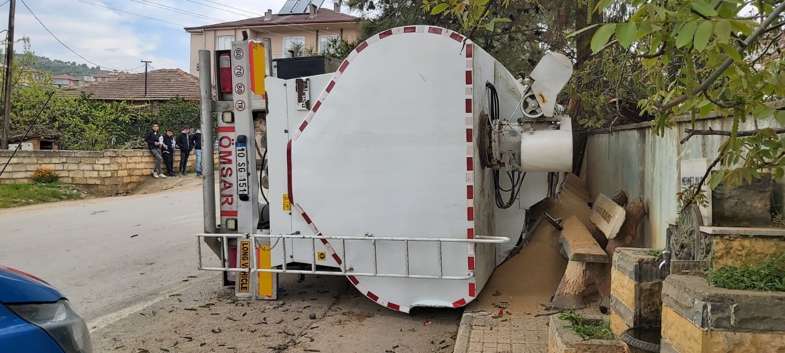 Kaza, İznik ilçesi Boyalıca Mahallesi’nde meydana geldi. Edinilen bilgiye göre, Gürkan Korkmaz idaresindeki 10 AFC 053 plakalı civciv yemi yüklü tır, yol ayırımından dönüş yaptığı sırada devrildi. Sürücü Gürkan Korkmaz ve yanında bulunan yolcu olan oğlu Ayhan Korkmaz kazayı yara almayan atlattı. Tırın dorsesinde bulunan yemler yola dökülürken kaza anı güvenlik kamerasına saniye saniye yansıdı.