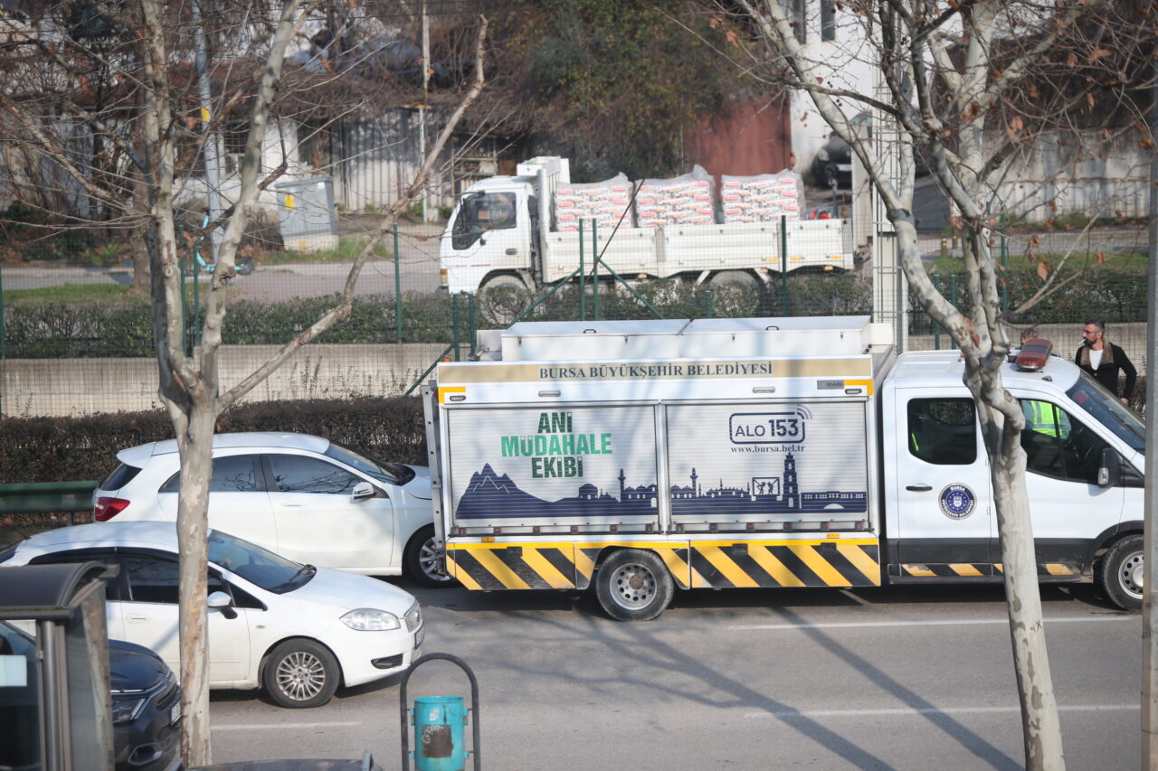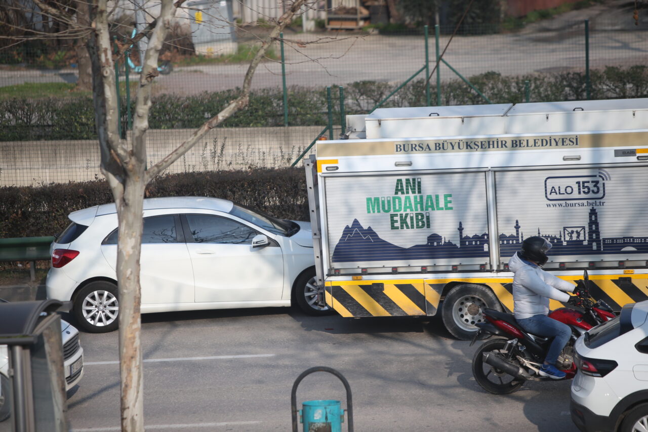 Bursa istikametinde seyreden Bursa Büyükşehir Belediyesi’nin Ani Müdahale Ekibi aracı ile iki otomobil arka arkaya çarpıştı.