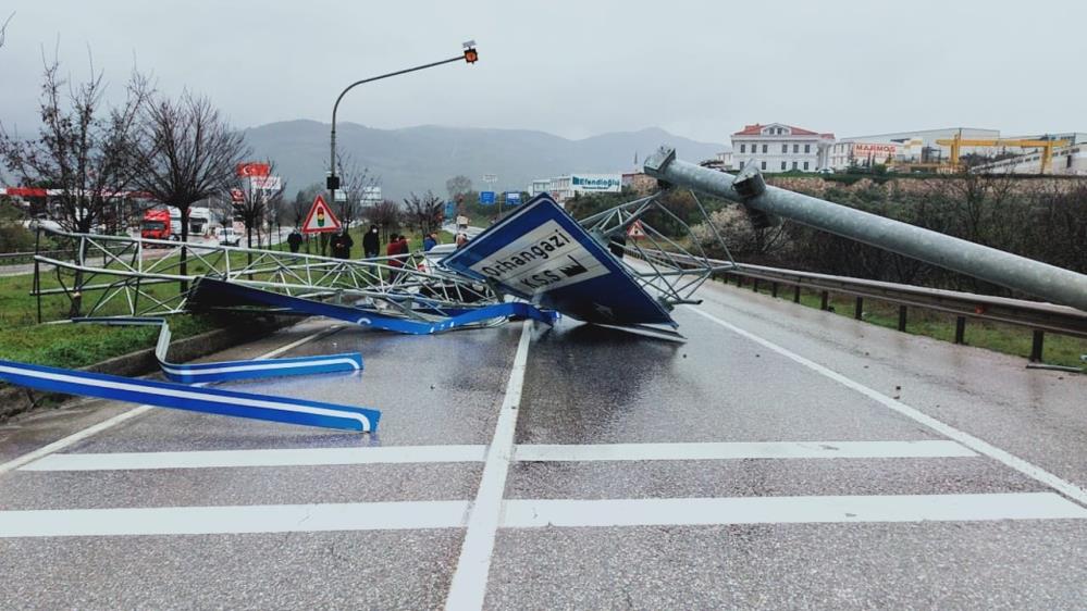 Yola devrilen levhalar sebebi ile Bursa-Yalova kara yolunda trafik durdu. Polis bölgede güvenlik tedbiri aldı. Ekiplerin yolu kapatan levhaları kaldırmaları yaklaşık yarım saat sürdü. Bu sırada Yalova istikametine doğru araç geçişine izin verilmedi. Tabelaların kaldırılmasıyla yol tekrar açıldı. İHA