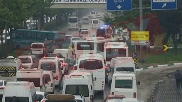 Kaza nedeniyle İzmir istikametine giden yolda bir süreliğine trafik felç oldu.