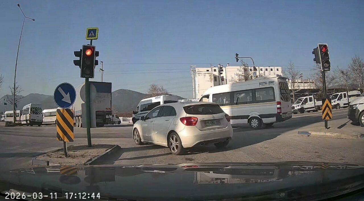 Olay, Kestel ilçesi Barakfakih Organize Sanayi Bölgesi Ankara Yolu Caddesi üzerinde meydana geldi. Fabrikaların iş çıkışı nedeniyle trafikte yoğunluk yaşanırken, bazı sürücülerin kırmızı ışıkta beklemek yerine ihlal yaparak ilerlediği görüldü. Zaman kaybı yaşamamak için kırmızı ışıkta geçen sürücüler hem kendi canlarını hem de diğer sürücülerin güvenliğini tehlikeye attı.