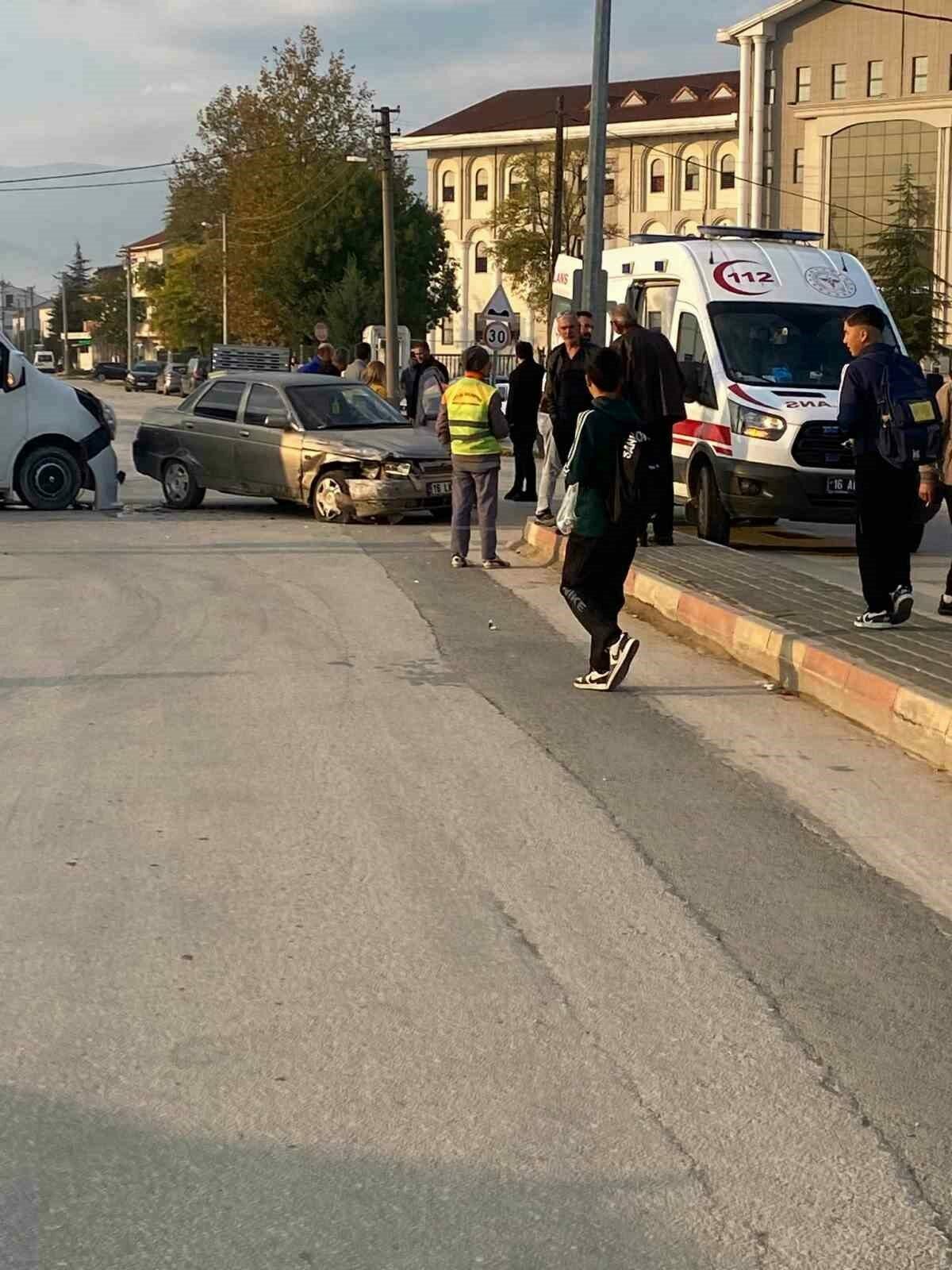 Seyir halindeki sürücü Selver Ş.(35) yönetimindeki 16 LKS 44 plakalı otomobil ile ara sokaktan çıkan Davut Ö. Yönetimindeki 16 S. 6404 plakalı servis minibüsü çarpıştı.
