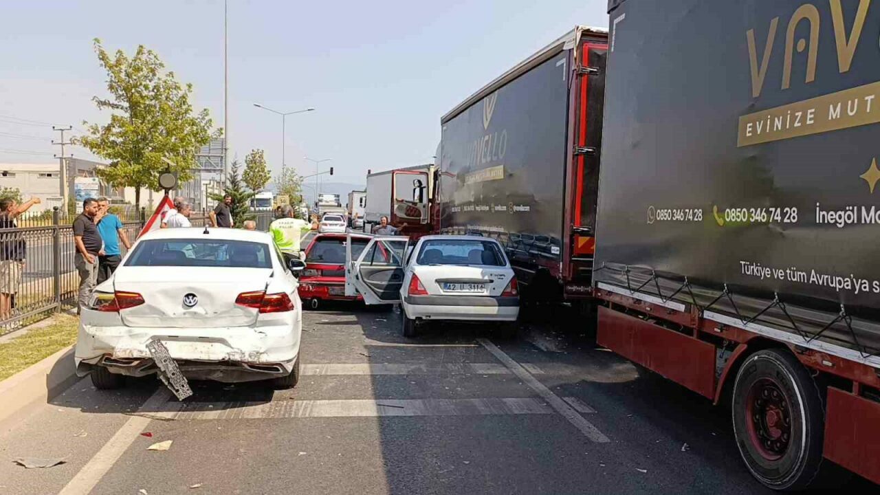 İnegöl’den Bozüyük istikametine seyir halinde olan Sürücü Ahmet K.(69) yönetimindeki 42 U 3114 plakalı otomobil, sürücüsünün fren yerine gaza basması sonucu kontrolden çıkarak, kırmızı ışıkta bekleyen sürücü A.O.(53) yönetimindeki 16 AG 883 plakalı otomobile, ardından sürücü C.A.(44) yönetimindeki 54 AHS 636 plakalı otomobile ve sürücüsü M.Y.(51) yönetimindeki 16 KPE 28 plakalı TIR’a çarparak durabildi.
