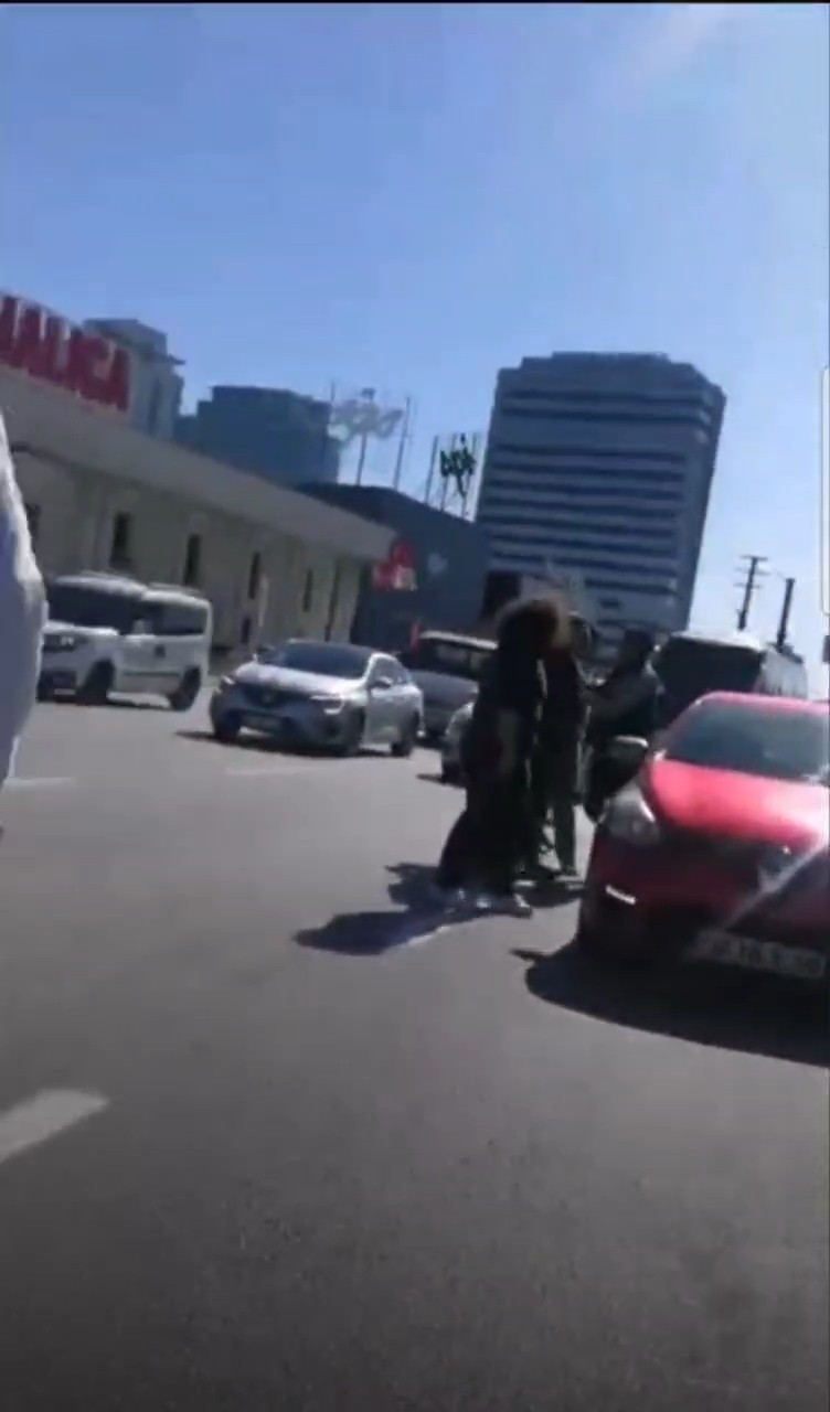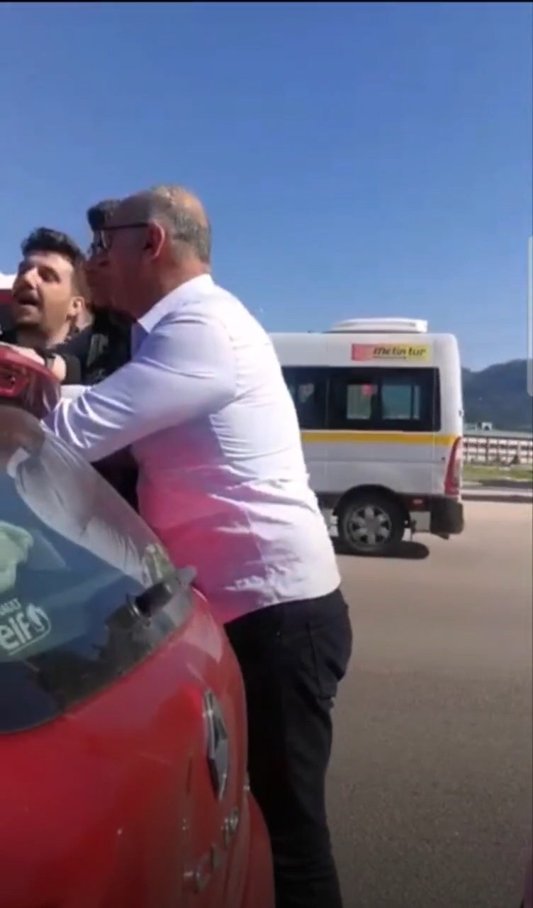 Kavgayı gören diğer sürücülerin araya girmesiyle kavga son bulurken bu anlar cep telefon kamerasına yansıdı.