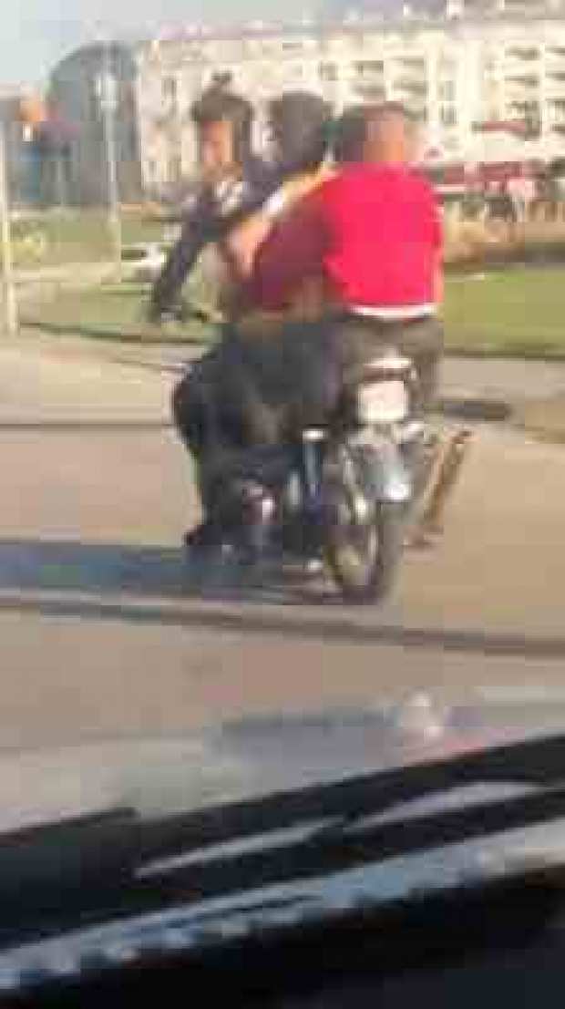 İzmir yolu üzerinde çekilen bir diğer görüntüde ise en bir otomobilden çekilen görüntülerde bir motosikletteki 4 kişi dikkat çekiyor. Görüntüleri incelemeye alan polisin her iki olayla alakalı olarak araştırma başlattığı öğrenildi.