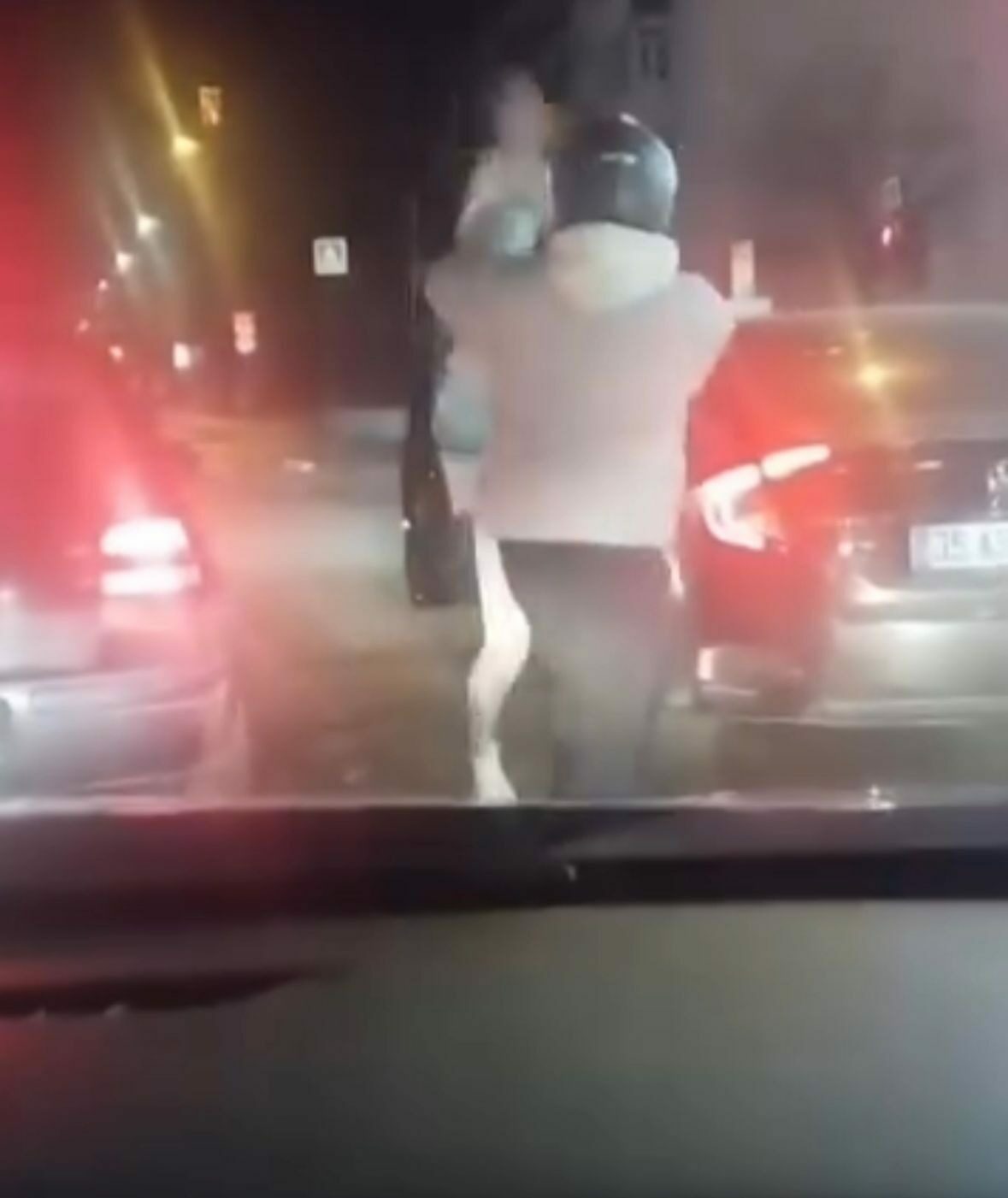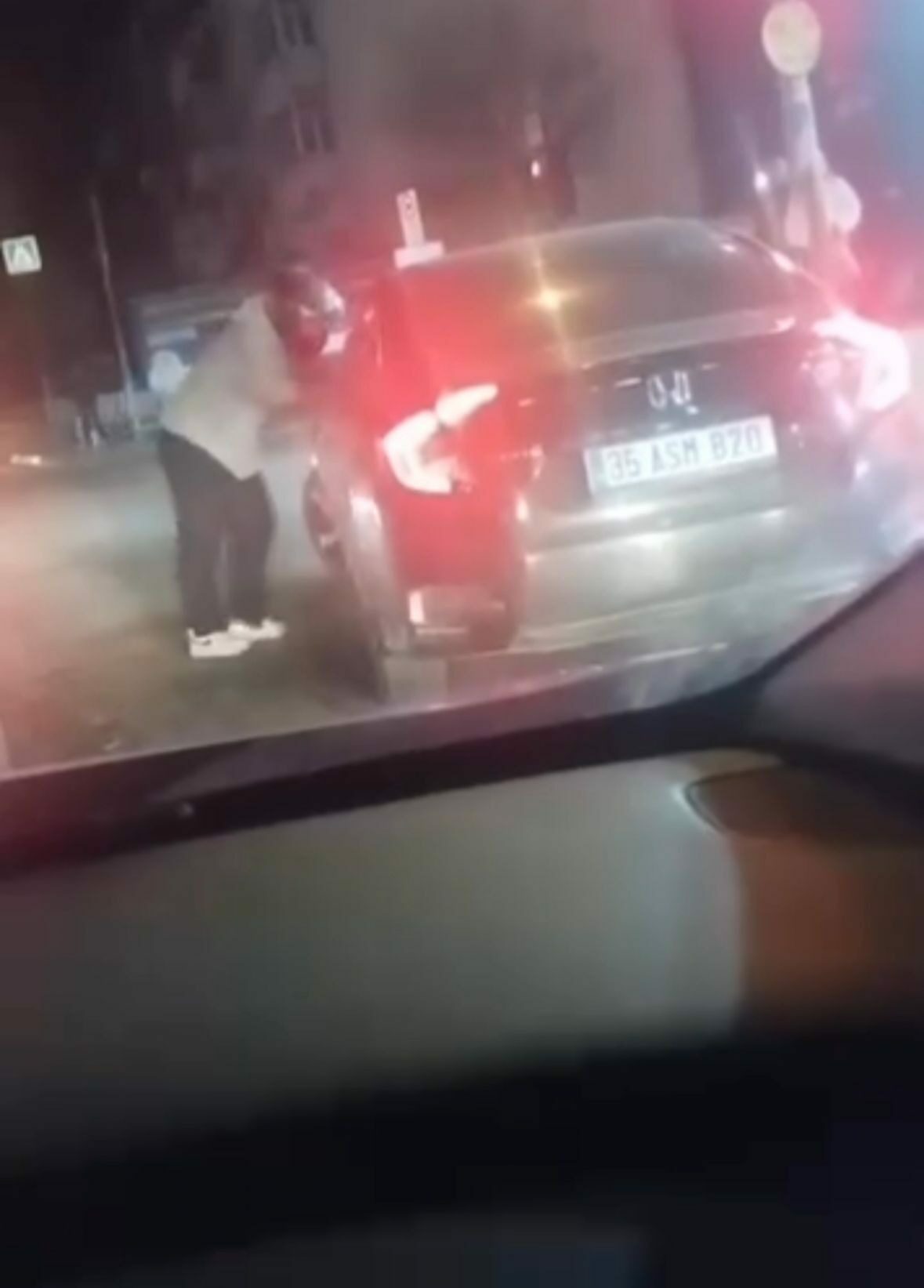 Motosiklet sürücüsü, seyir halindeyken aracını sıkıştırdığını iddia ettiği 35 ASM 820 plakalı otomobilin sürücüsünü trafik ışıklarında durunca uyarmak için yanına gitti.