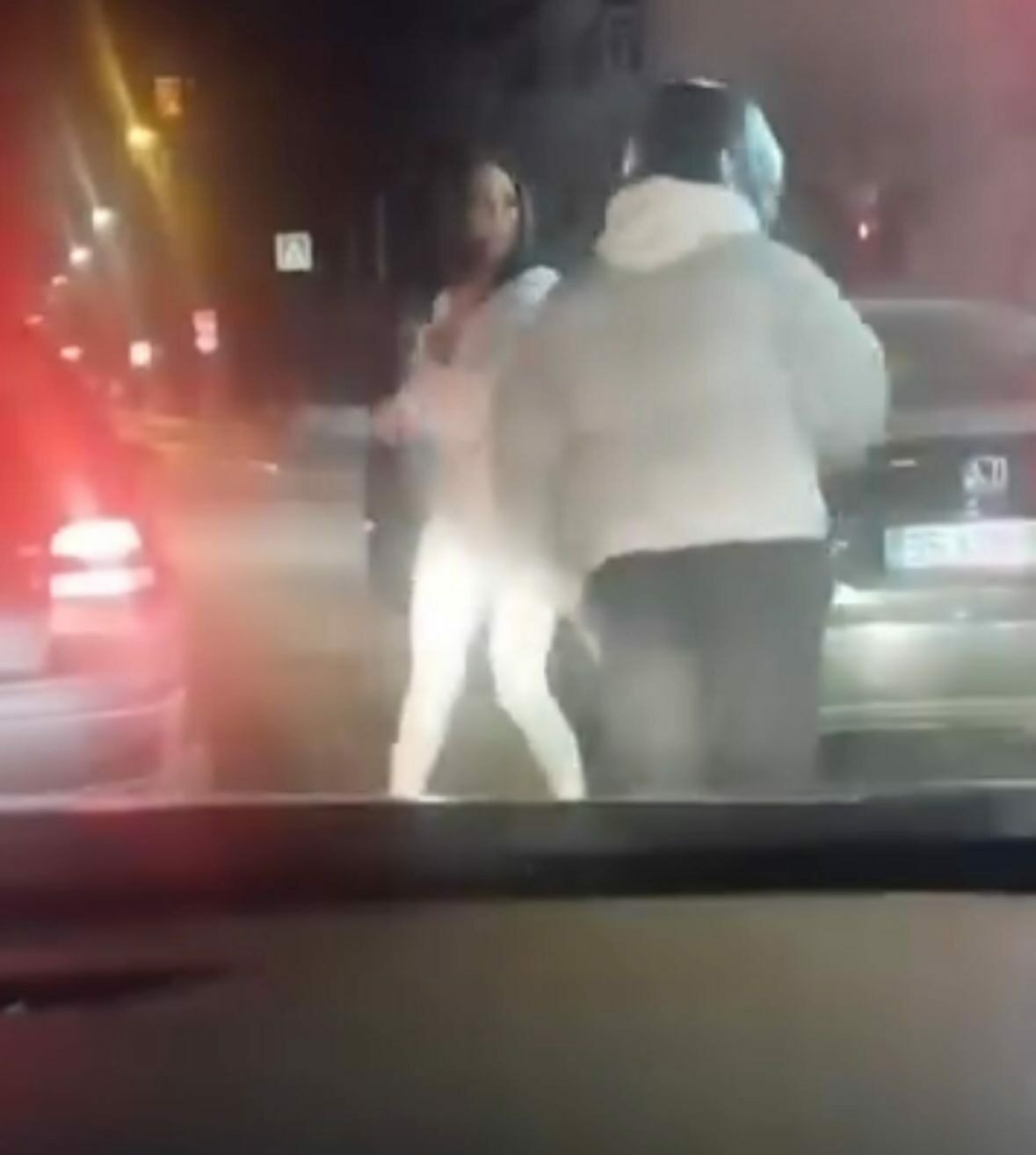 Bu sırada otomobilin kadın sürücüsü, aracına yaklaşan motosiklet sürücüsünün kaskına camdan yumruk atıp, aşağı indi.