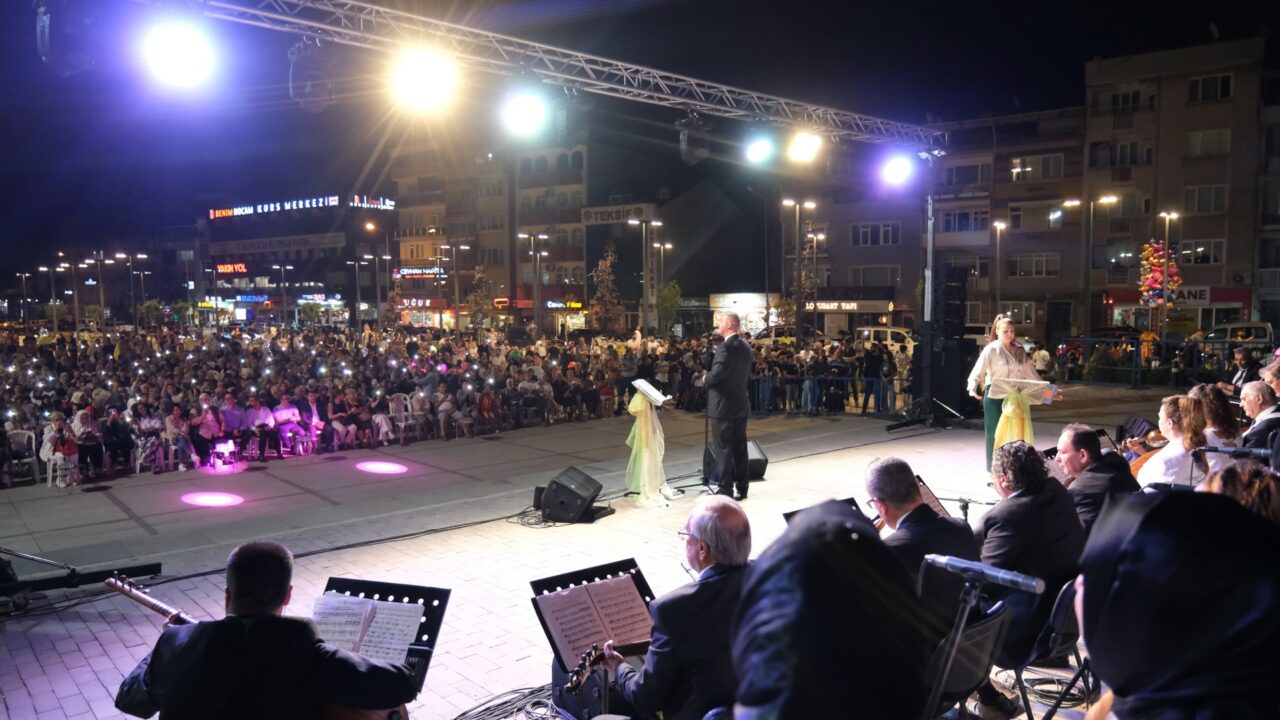 İnegöl Belediyesi Türk Sanat Müziği Korosu, Pazartesi akşamı heykel önünde düzenlenen konserde ilçe halkıyla buluştu. İnegöllüler, koronun muhteşem performansıyla unutulmaz bir gece yaşadı.