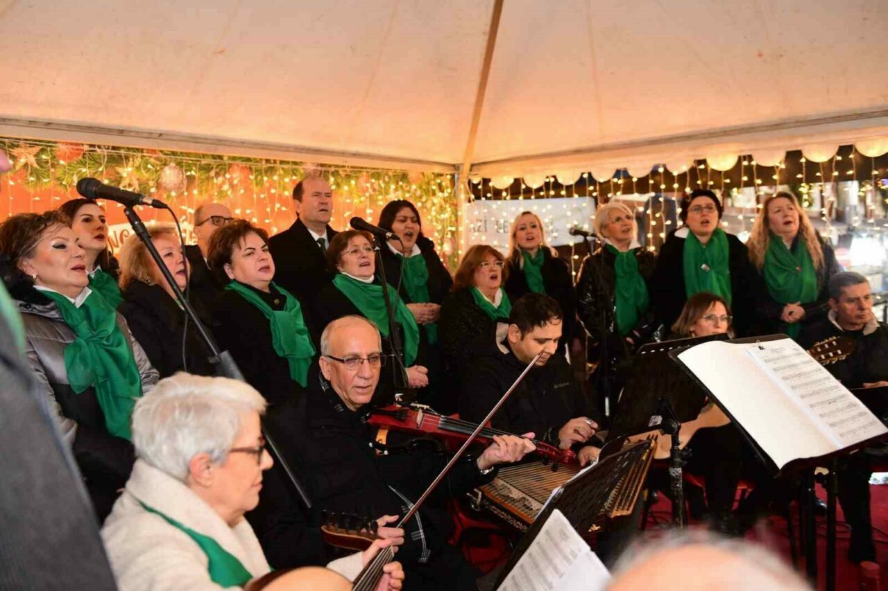 Osmangazi Belediyesi’nin ev sahipliğinde Osmangazi Meydanı’nda Bursalıları ağırlayan Yeni Yıl Festivali, 2026’ya sayılı günler kala vatandaşların ilgi odağı olmaya devam ediyor. Festivalin üçüncü haftası geride kalırken, etkinlikler kapsamında Uludağ Sanat Derneği Müzeyyen Senar Türk Sanat Müziği Korosu sahne aldı. Repertuvarında Türk sanat müziğinin dillere pelesenk olan seçkin eserlerine yer veren Hilmi Bozdemir şefliğindeki koro, soğuk havaya rağmen kendilerine yoğun ilgi gösteren dinleyicilerinin yüreklerini ısıttı. Performanslarıyla beğeni toplayan koro üyeleri, Bursalıları festivalde geçmişe doğru bir yolculuğa çıkardı.