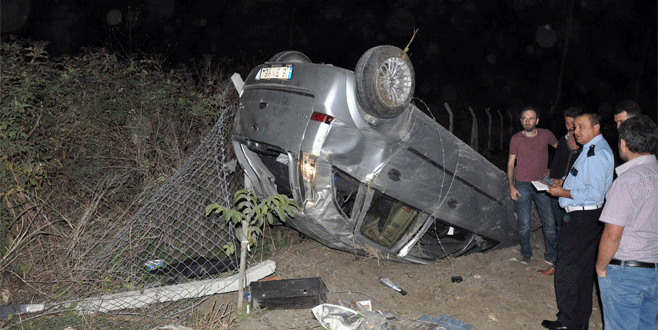 Alibeyköy’denİnegöl’e seyir halinde olan Yasin Y. yönetimindeki 16 BYY 64 plakalı özel otomobil, kasisi geçtikten sonra kontrolden çıktı. Takla atan araç, yol kenarındaki tarlada ters döndü. Sürücü ile otomobilde bulunan 5 genç, kendi imkanları ile araçtan çıktı. 35 yaşındaki Serkan M. ile 25 yaşındaki Ali Ş. hafif şekilde yaralandı.