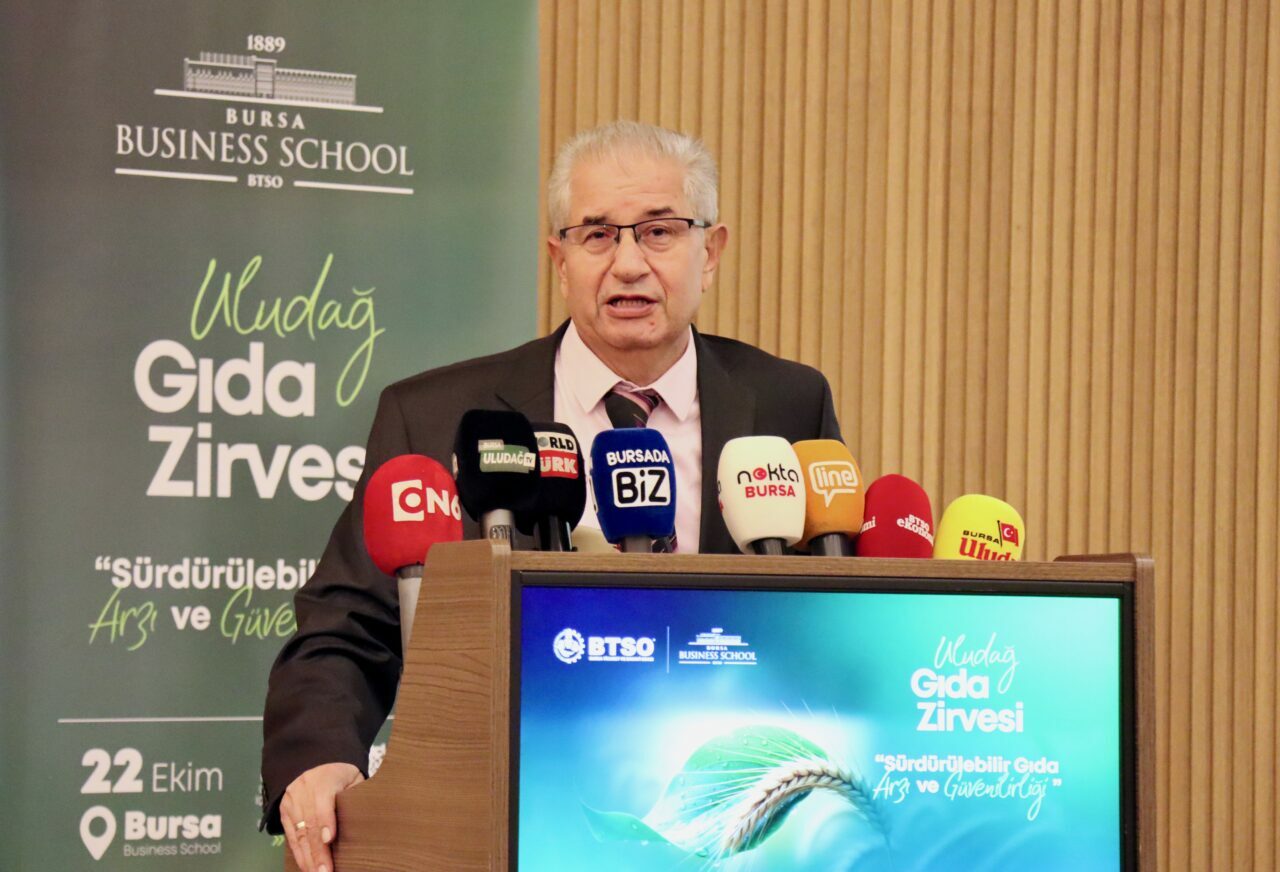 BTSO Gıda ve Paketli Ürünler Konseyi Başkanı Burhan Sayılgan da Türkiye’nin iklim çeşitliliği ve üretim potansiyeliyle dünyanın önde gelen tarım ülkeleri arasında olduğunu, Bursa’nın da güçlü sanayisi, verimli arazileri ve gelişmiş lojistik altyapısıyla gıda üretiminde kilit merkez konumunda yer aldığını anlattı.