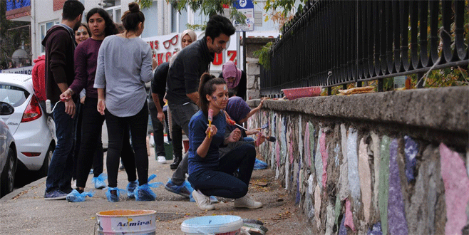 60 yıllık tarihe sahip Merinos İlkokulu’ndaki boyama çalışmasına bazı öğrenciler ve veliler de destek sağlarken, üniversiteliler; Okul Müdürü Zübeyit Toz, Okul Aile Birliği Başkanı Seval İşineri, Yönetim Kurulu Üyesi Şehnaz Olcay Ertekin ve veli Selen Özer’le birlikte hatıra fotoğrafı da çektirdiler.
