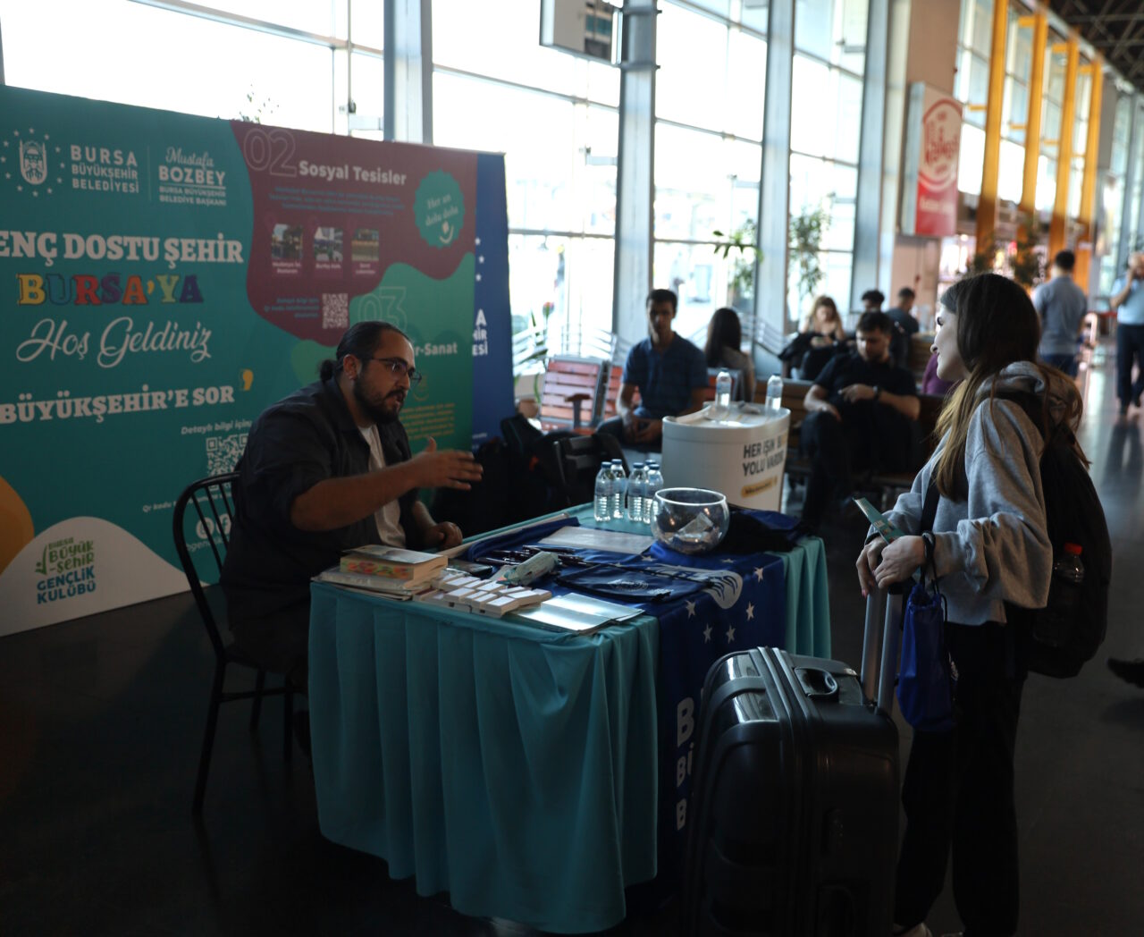 Bursa Şehirlerarası Otobüs Terminali, Bursa Teknik Üniversitesi Yıldırım Bayezid ve Mimar Sinan yerleşkelerinde açılan stantlarla öğrencileri karşılayan Büyükşehir Belediyesi ekipleri, gençlere Bursa’ya yönelik bilgiler verdi.