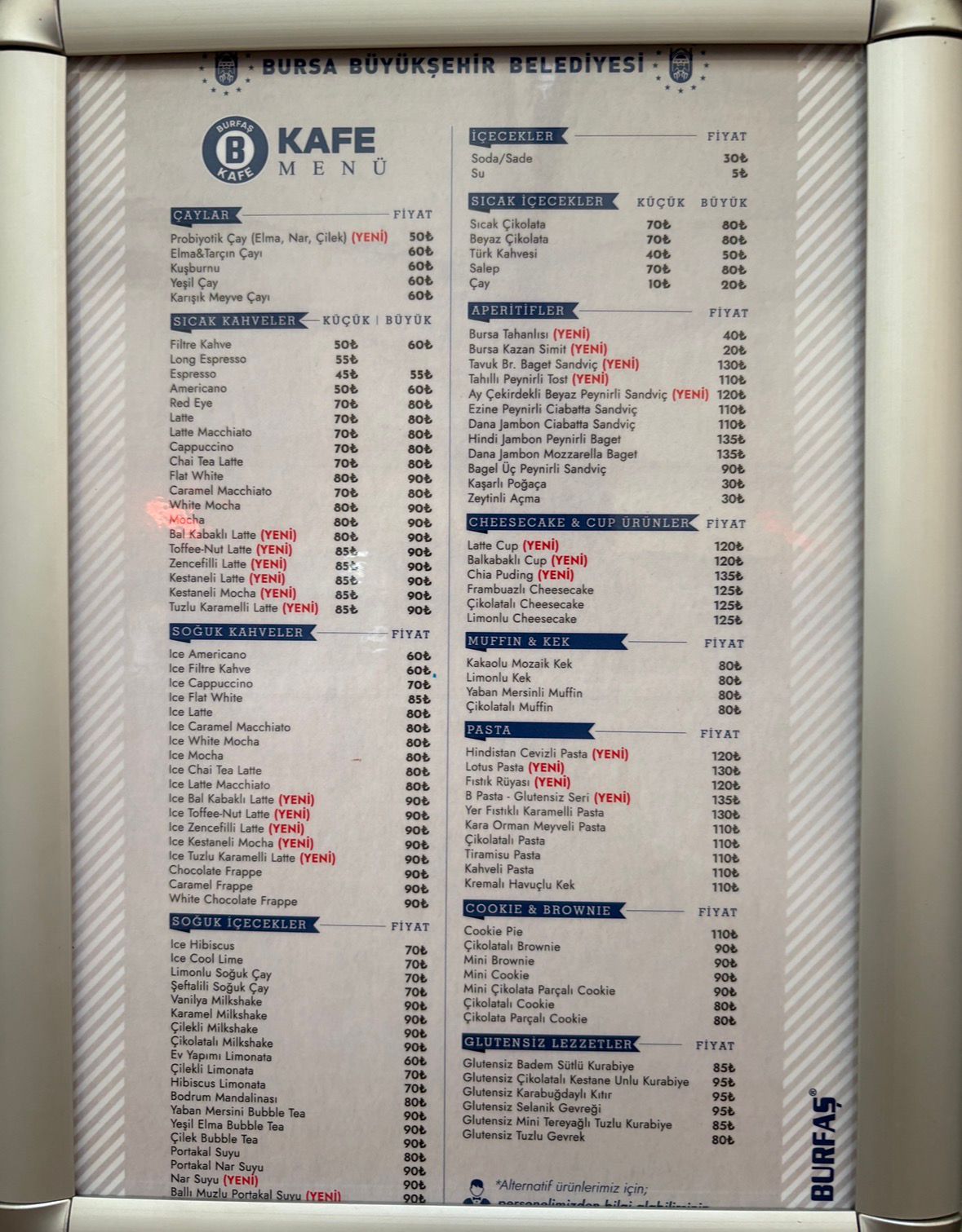 Bursa Büyükşehir Belediyesi’nin kent genelinde “uygun fiyatlı” konseptiyle hizmet veren B Kafe’sinde yeni yıl tarifesi belli oldu. Güncellenen fiyat listesiyle birlikte özellikle kahve ve sıcak içecek grubunda dikkat çeken artışlar yaşandı.
