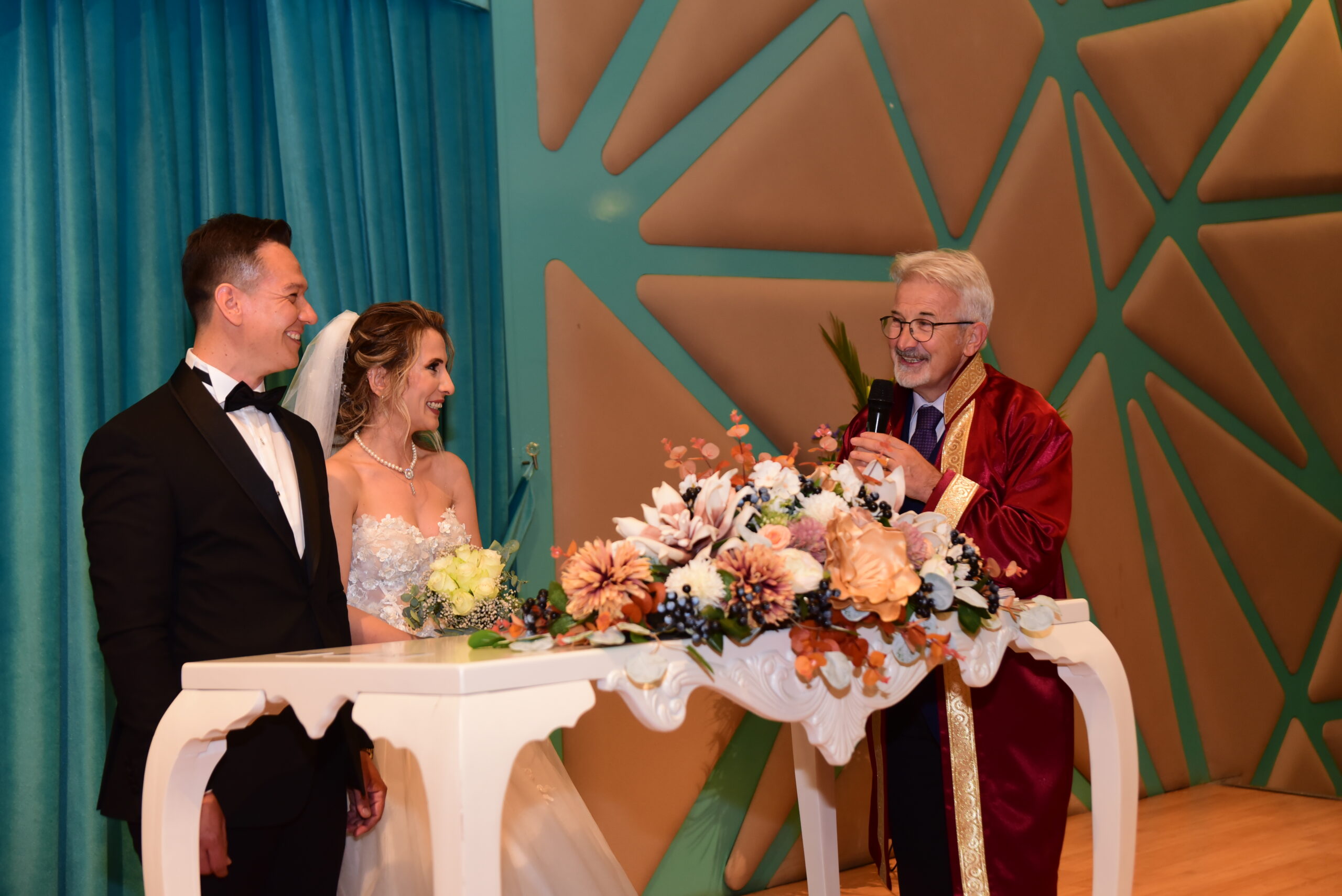 Nilüfer Nikah Dairesi Yakut Salon’daki görkemli törene çok sayıda seçkin konuk katıldı. Nikahlarını Nilüfer Belediye Başkanı Turgay Erdem’in kıydığı çiftin şahitliklerini ise Eski Nilüfer Belediye Başkanı ve Büyükşehir Belediye Başkan adayı Mustafa Bozbey, Hatice Yıldız, Rahşan Tuncer, Deniz Ege Ceylan üstlendi.