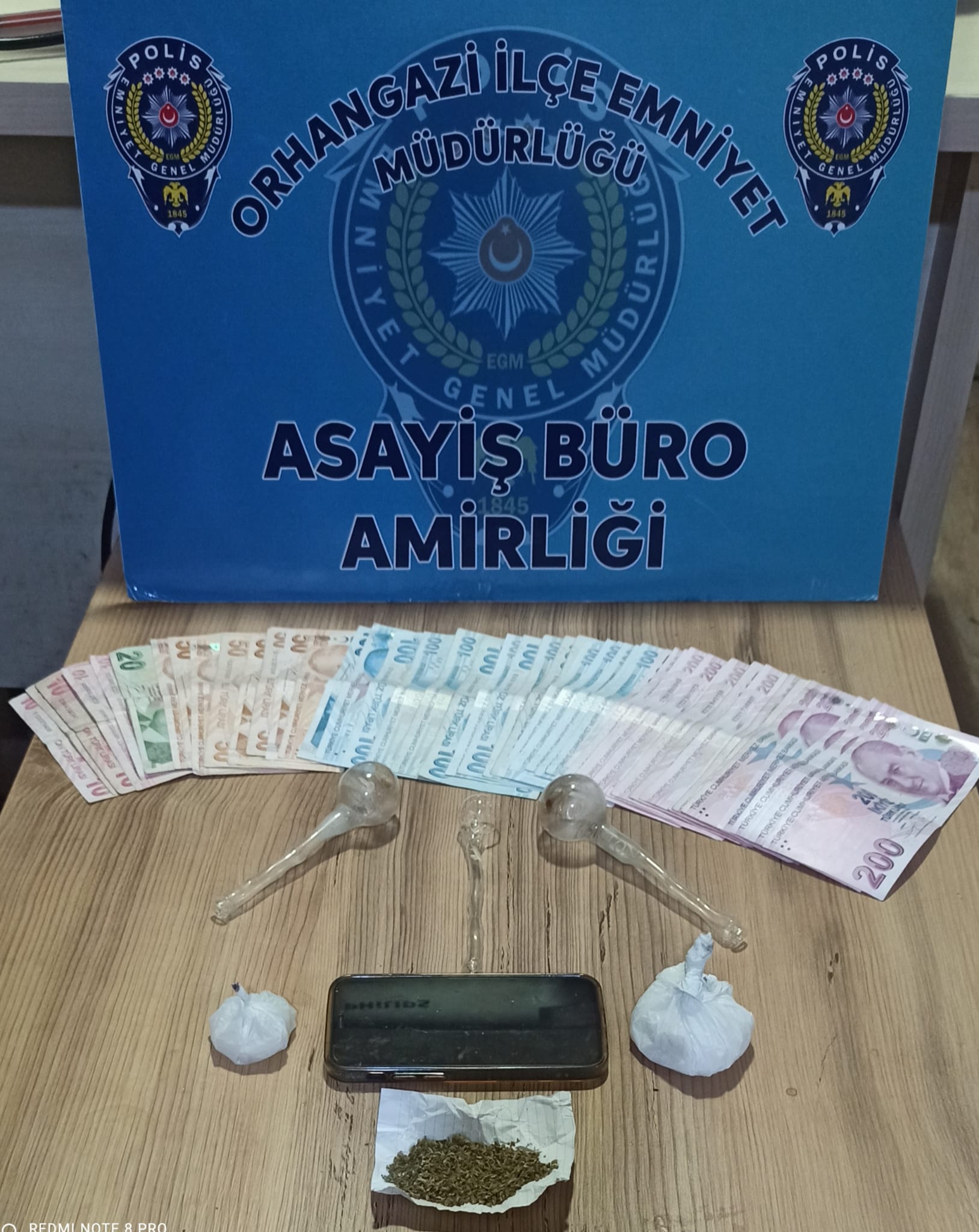 Cumhuriyet savcısından alınan talimatla bu kişinin evinde yapılan aramada 43 gram metamfetamin, 2 gram esrar ve uyuşturucu içiminde kullanılan 3 aparat ele geçirildi.