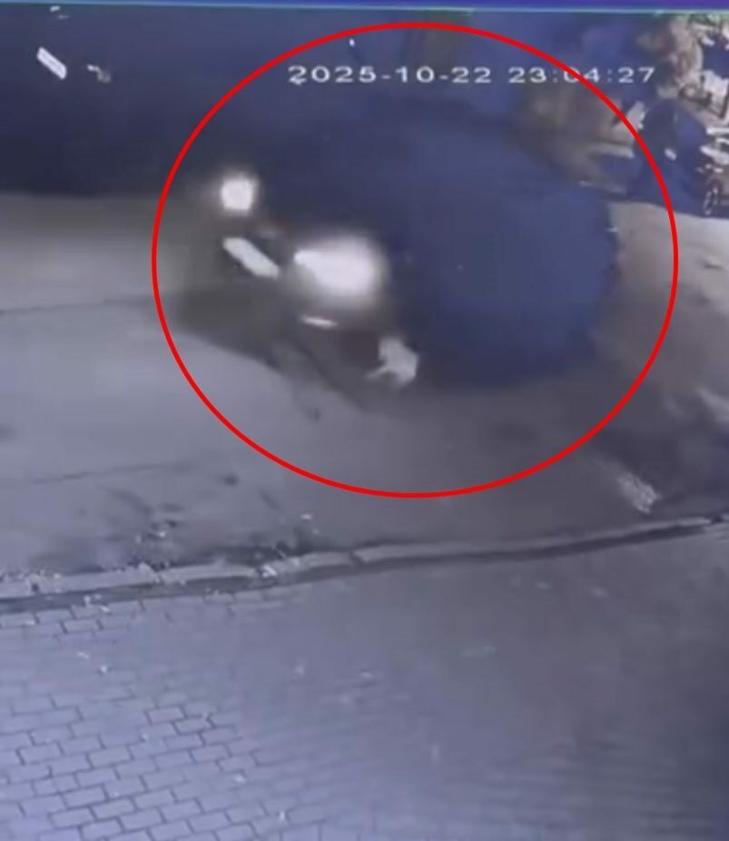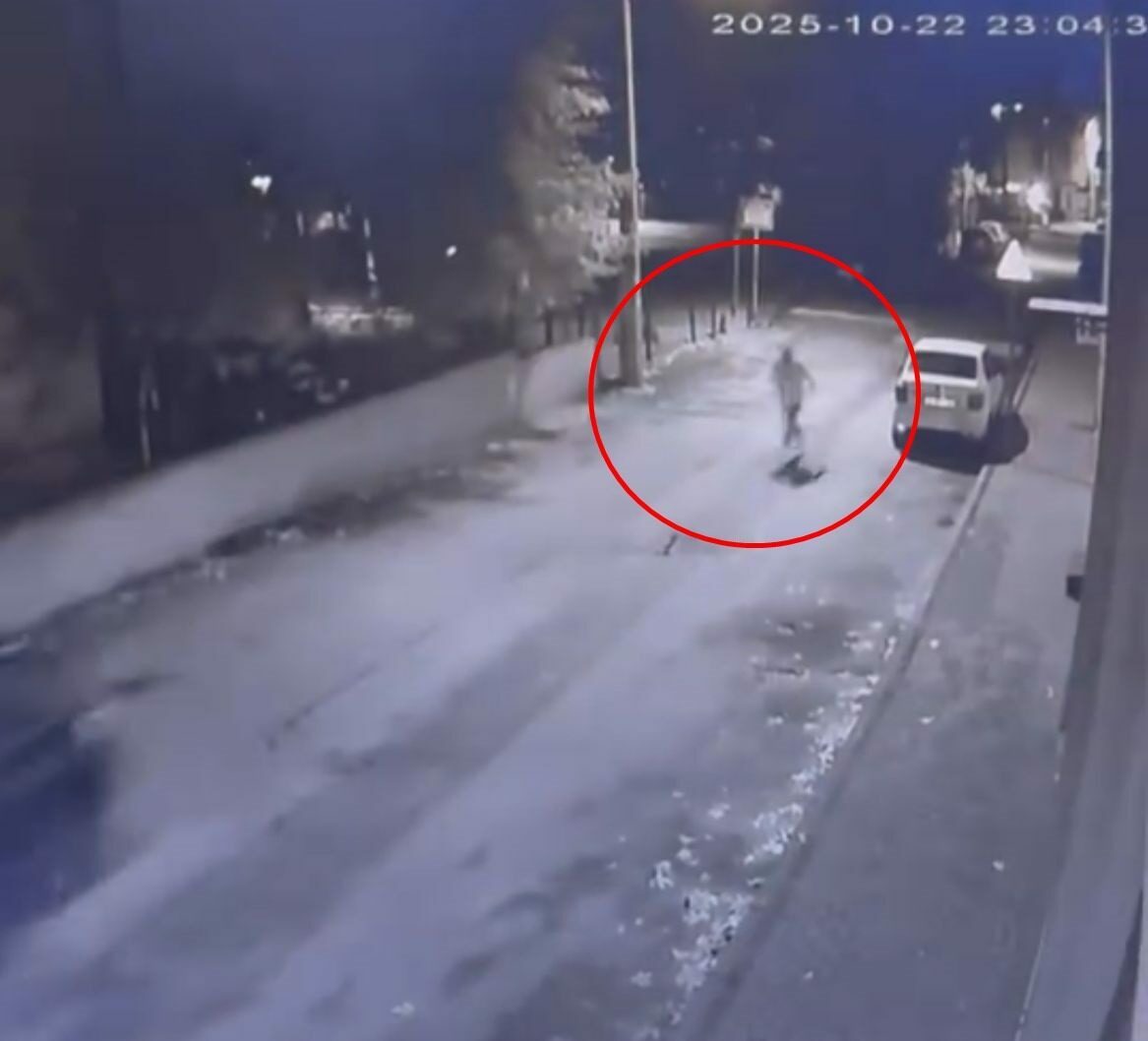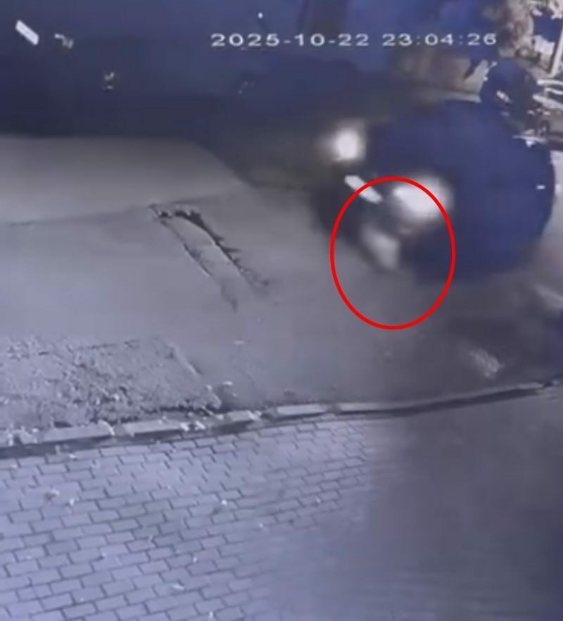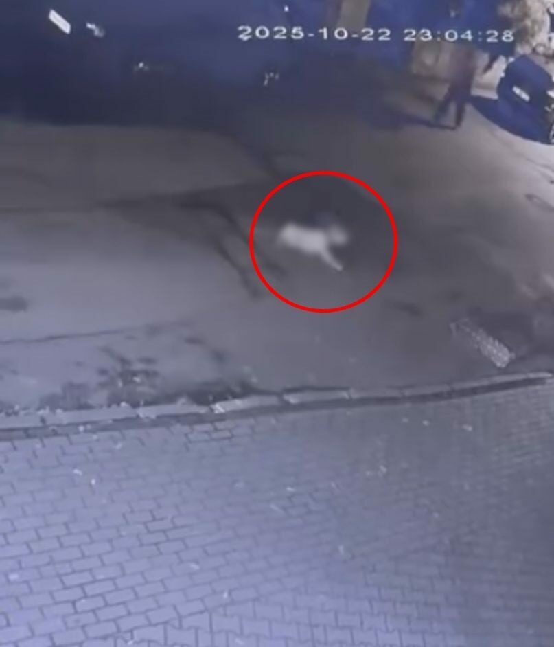 Sokak arasında seyreden bir cip, sahibinin gezdirmeye çıkardığı köpeğe çarptı. Sürücü, aracıyla birlikte hızla uzaklaşırken, o anlar çevredeki bir iş yerinin güvenlik kamerasına yansıdı.