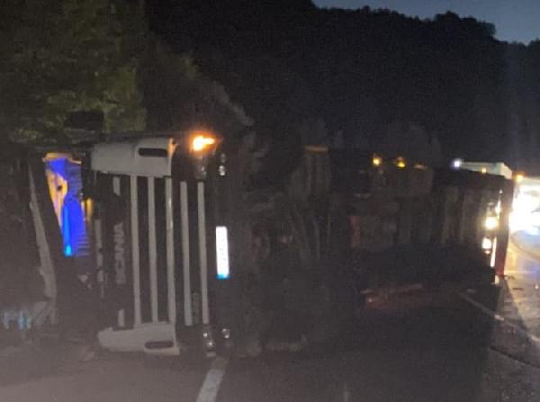 Bursa’dan Eskişehir’e giden Yunus Ertuğrul idaresindeki 02 HV 860 plakalı iplik yüklü TIR, virajlı yolda sürücüsünün kontrolünü yitirmesi sonucu devrildi.