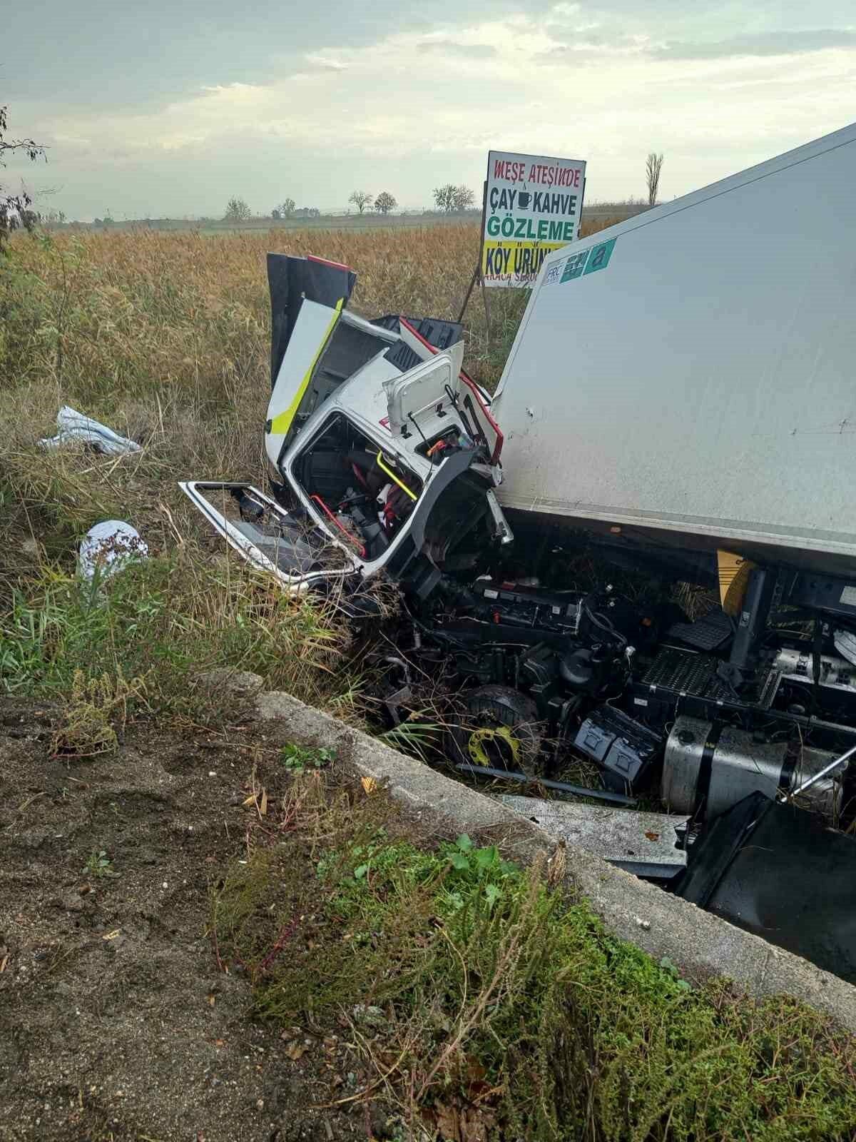 Edinilen bilgiye göre, Nevzat İ. (42)’nin kullandığı CB9868AE plakalı çekici ve X5182EM plakalı yarı römork ile Bandırma istikametinden Karacabey istikametine seyir halindeyken Karacabey ilçesi Dağkadı Mahallesi yakınlarına geldiğinde direksiyon hakimiyetini kaybederek yoldan çıktı. Kontrolden çıkan tır yol kenarında tarlaya devrilerek durabildi.