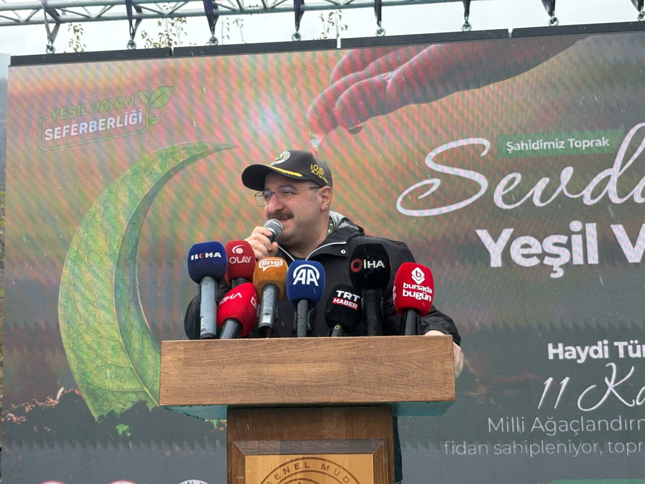 Bursa Valisi Erol Ayyıldız, törende yaptığı konuşmada dayanışmanın gücüne vurgu yaparak, “Bir yangından geçtik, felaketin eşiğinden döndük. Kamu kurumlarımız, belediyelerimiz, sivil toplum kuruluşlarımız tek yürek oldu ve yangının büyümesinin önüne geçildi. Şahsım ve mahalim adına hepinize teşekkür ediyorum. Şimdi hep birlikte Yeşil Vatan’a minik yüreklerle, fidanlarla can veriyoruz. Şahidimiz toprak, imzamız fidan, sevdamız Yeşil Vatan” dedi.