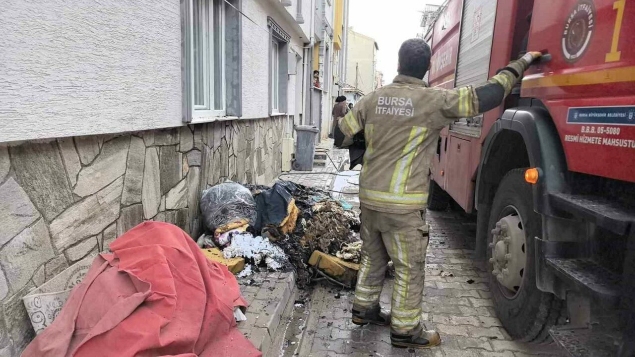 Yangın, saat 13.30’da İnegöl ilçesinin Ertuğrulgazi Mahallesi Acar Sokakta bulunan apartmanın 2. katında meydana geldi.