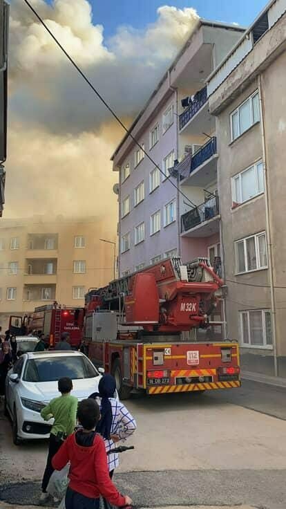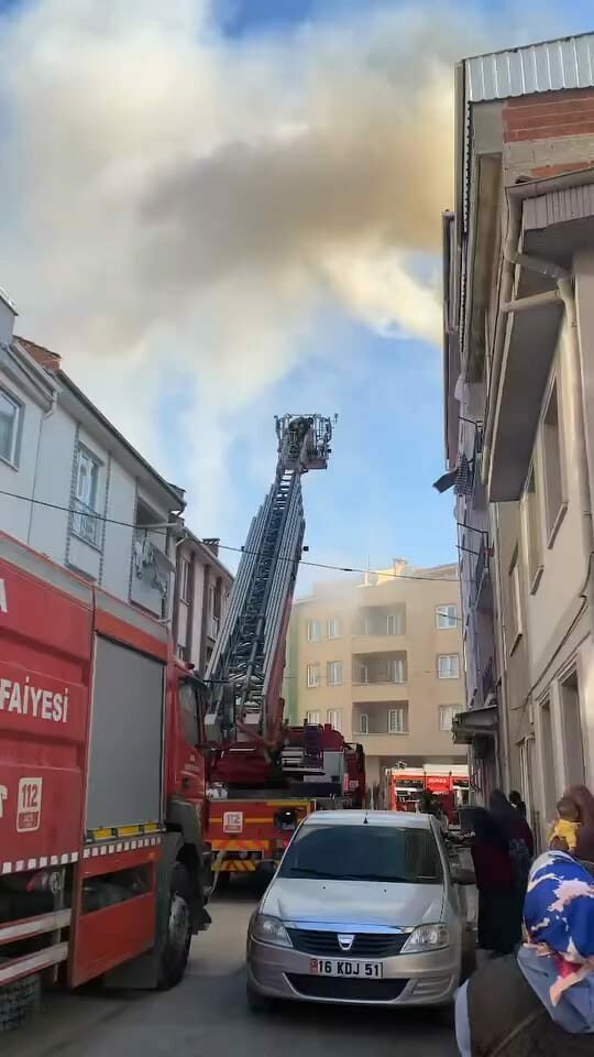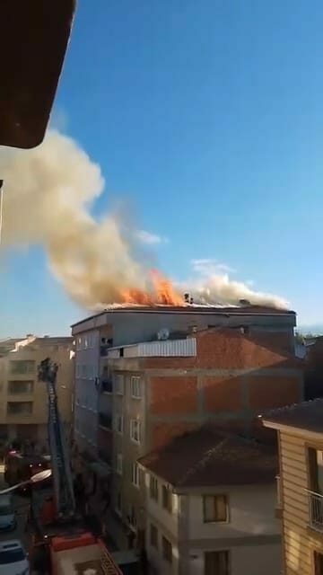 Yangın saat 17.00 sıralarında Orhaniye Mahallesi Çömlekçiler Sokakta bulunan 5 katlı apartmanın çatısında çıktı.