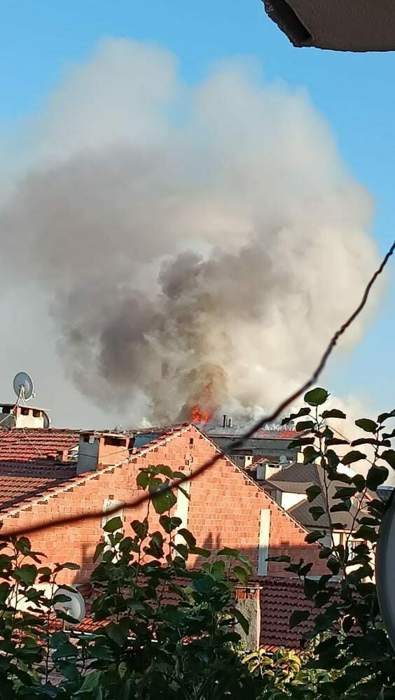 Alevler bir anda çatıyı sararken, ihbar üzerine adrese çok sayıda itfaiye ekibi sevk edildi.