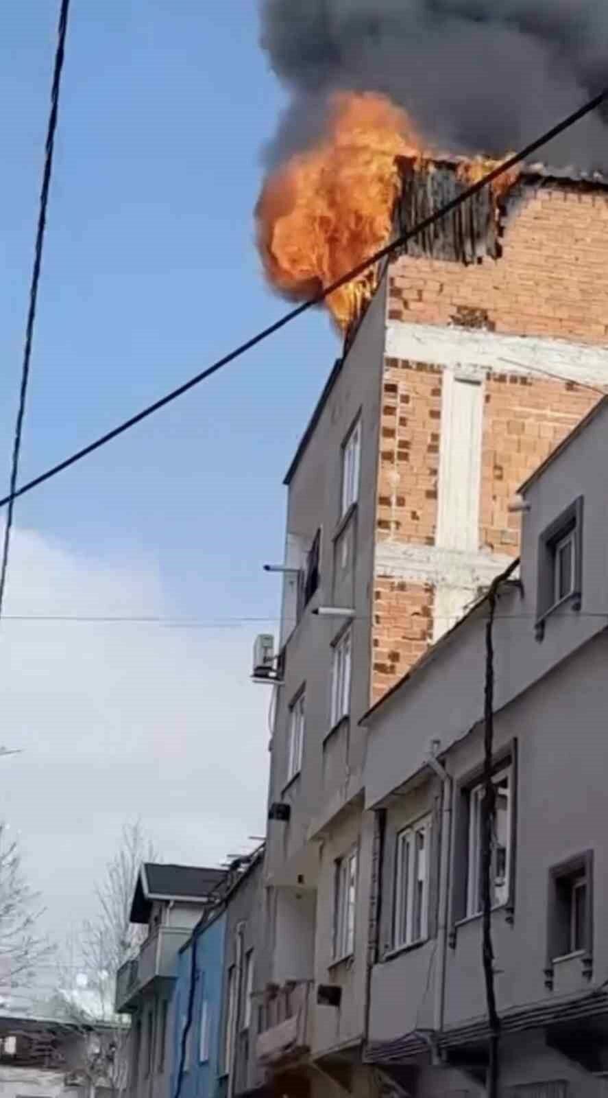 Bursa’nın Yıldırım ilçesi Millet Mahallesin’de bir evin çatı katında çıkan yangın mahallede kısa süreli paniğe neden oldu. Henüz çıkış nedeni belirlenemeyen yangını fark eden vatandaşların ihbarı üzerine olay yerine itfaiye ekipleri sevk edildi.