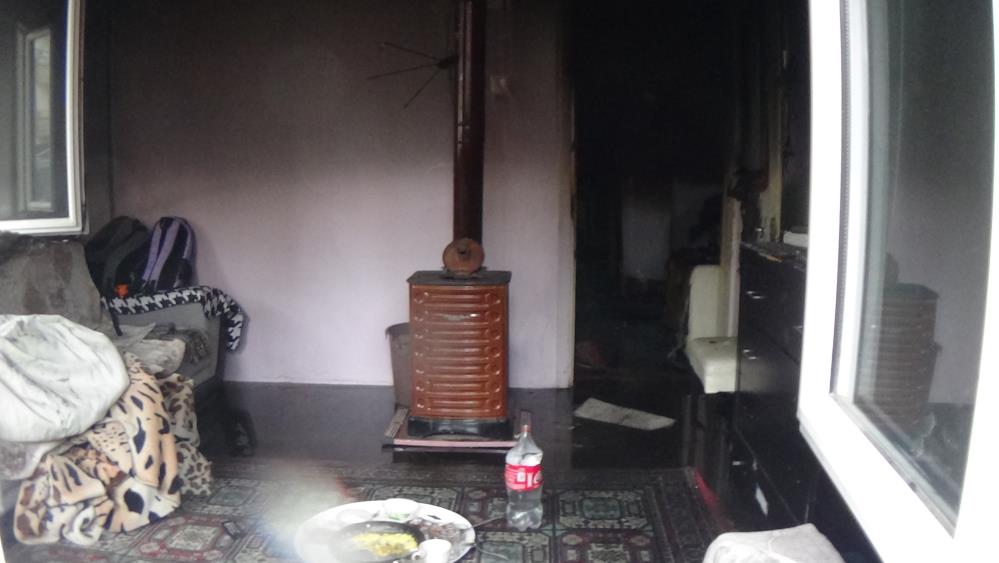 İddiaya göre, evde yanan sobadan yangın çıktı. Kısa sürede yangın binayı sardı. İhbar üzerine itfaiye ekipleri sevk edildi. Evde bulunan anne S.A. ile 3 çocuğu kendilerini dışarı zor attı. İtfaiye ekipleri alev topuna dönen yangını söndürdü.