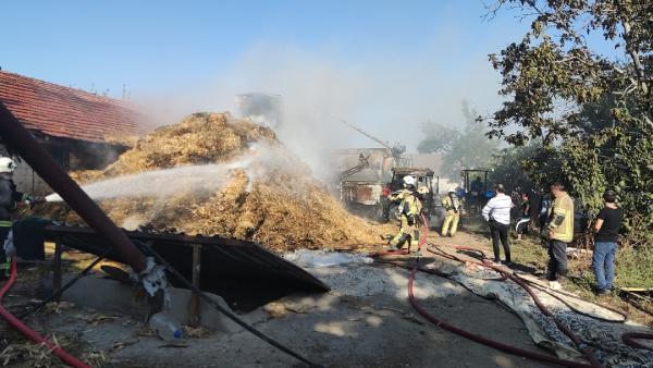 Çiftliğin bahçesindeki saman yığınında başlayan yangın kısa sürede büyüdü. Çevredekilerin ihbarı üzerine olay yerine itfaiye sevk edildi.