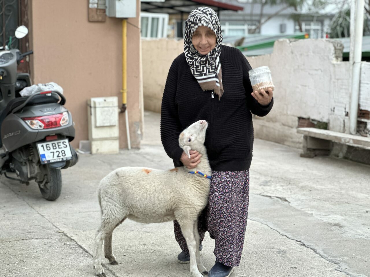 Mustafa Kemal Paşa Mahallesi’nde yaşayan 4 çocuk annesi Müyesser Sevinç, 10 günlükken annesi tarafından emzirilmeyen ikiz kuzulardan birini sahiplenerek büyütmeye başladı. Sevinç’in ‘Çorap’ adını verdiği ve biberonla beslediği 3 aylık kuzu ayrıca sahibinin peşinden ayrılmıyor.