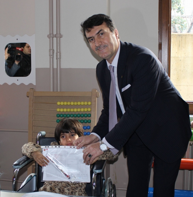 Dündar, engelli öğrenci Meryem Nur Işıksaçan’a tekerlekli sandalye hediye ederek mutluluğuna mutluluk kattı.