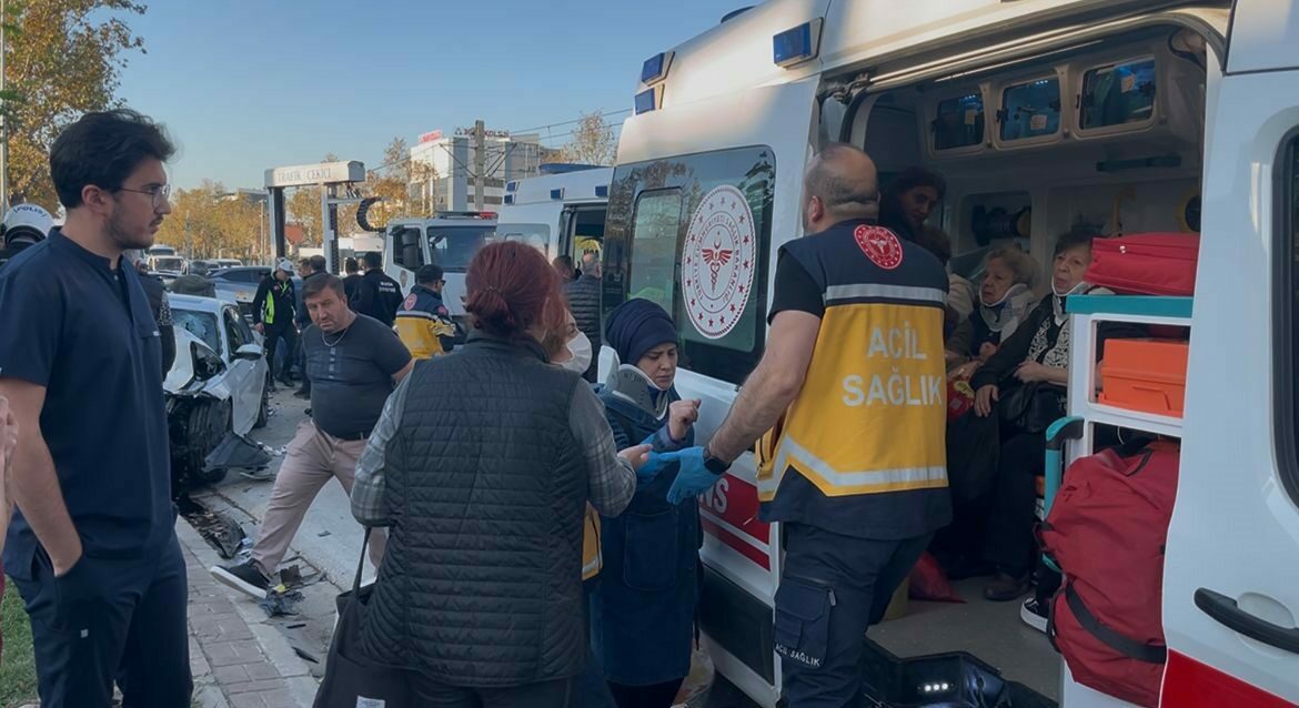 Olay, merkez Nilüfer ilçesi Karaman Mahallesi Mudanya Yolu üzerinde meydana geldi. Edinilen bilgiye göre, trafikte hız yapan ve birbirleriyle yarıştıkları öne sürülen iki otomobil sürücüsü, direksiyon hakimiyetini kaybetti. Kontrolden çıkan araçlar önce seyir halindeki belediye otobüsüne çarptı, çarpmanın etkisiyle savrulan araçlar kaldırıma çıkarak durabildi.