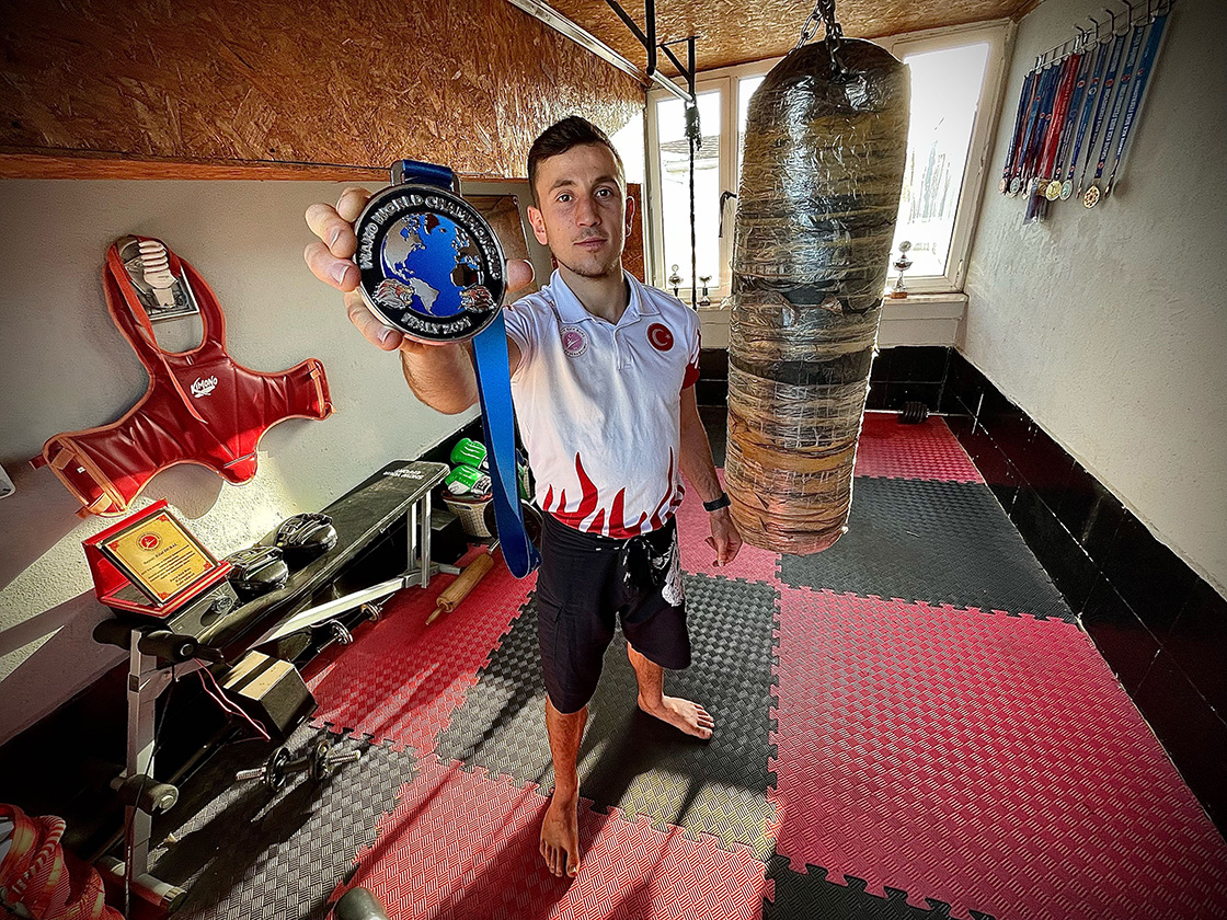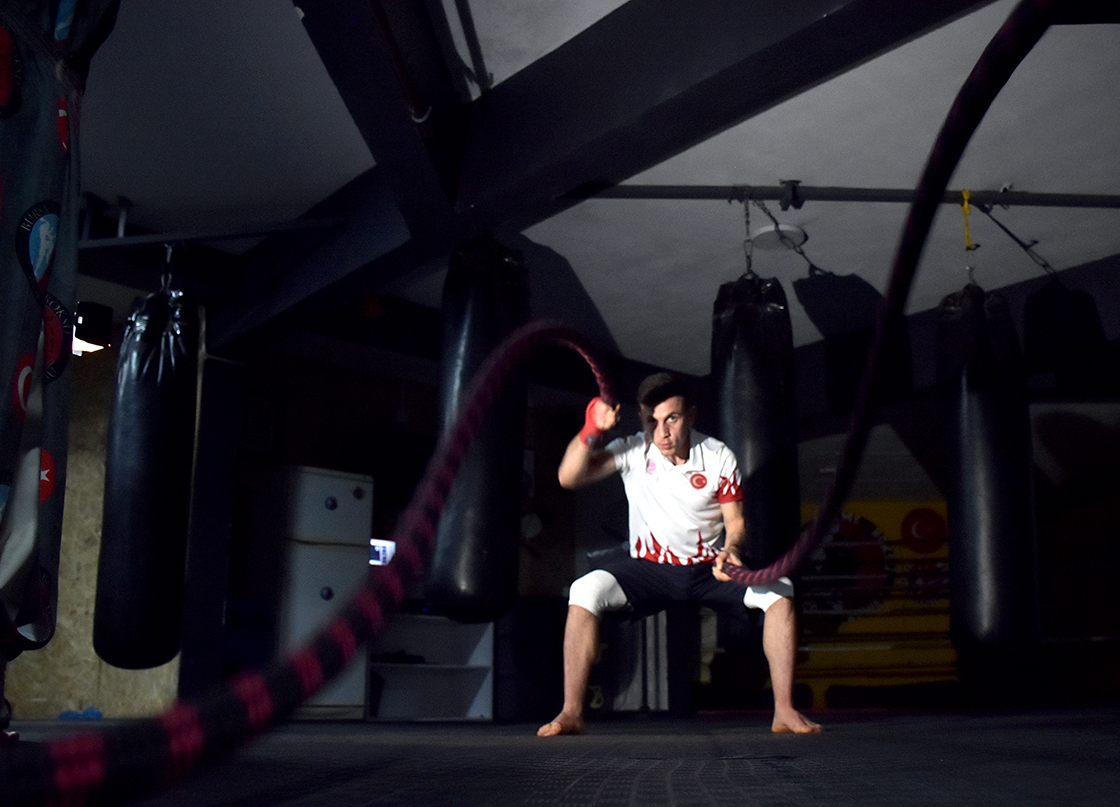Genç kick boksçu, antrenmanlarından arta kalan zamanlarında hem formunu korumak hem de masraflarını karşılamak için babasının Bursa’nın Mudanya ilçesindeki ikinci el eşya mağazasında çalışıyor.
