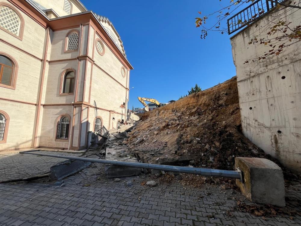 Sabah saatlerinde yürüyüş yapan kadının bilgi vermesinin üzerinden 9 saat sonra istinat duvarı ve yürüyüş yolu caminin arka bahçesine ve Kur’an kursu üzerine büyük bir gürültü ile yıkıldı. Tedbirlerin alındığı şeridin çekildiği alanda yaşanan yıkımda can kaybı yaşanmadı.