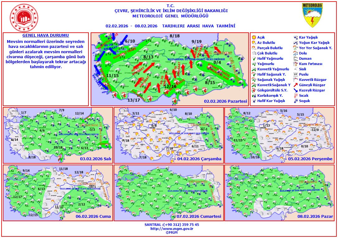 Meteoroloji Genel Müdürlüğü (MGM), hava tahmin raporunu güncelledi.