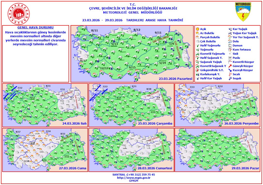 Meteoroloji Genel Müdürlüğü, hava tahmin raporunu güncelledi.