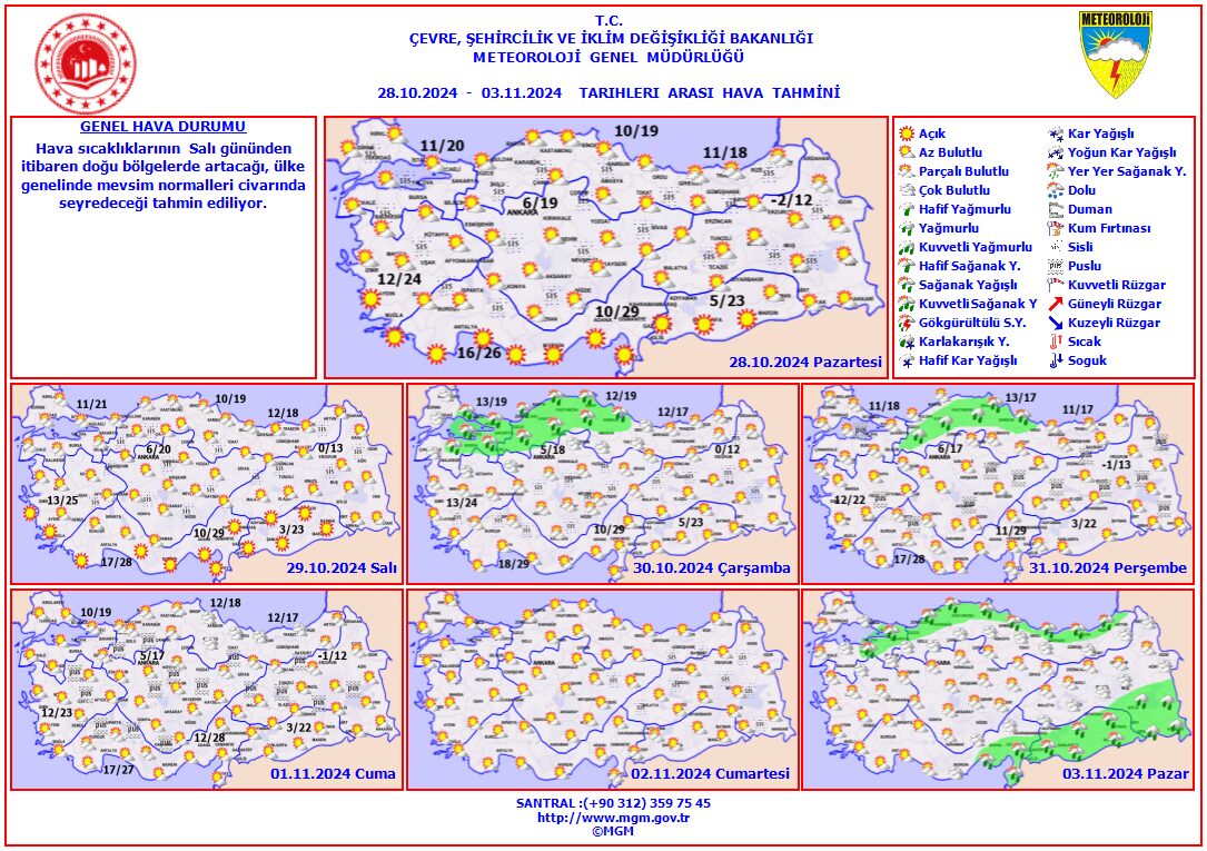 Meteoroloji Genel Müdürlüğü yeni haftanın tahmin raporunu yayınladı.
